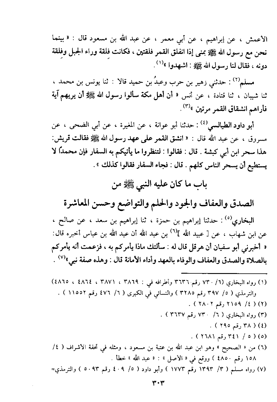 البُخَارِيّ: حَدثنَا إِبْرَاهِيم بن حَمْزَة، ثَنَا إِبْرَاهِيم بن سعد، عَن صَالح، عَن ابْن شهَاب، عَن [عبيد الله] بن عبد الله أَن عبد الله بن عَبَّاس أخبرهُ قَالَ: " أَخْبرنِي أَبُو سُفْيَان أَن هِرقل قَالَ لَهُ: سَأَلتك مَاذَا يَأْمُركُمْ بِهِ، فَزَعَمت أَنه يَأْمُركُمْ بِالصَّلَاةِ والصدق والعفاف وَالْوَفَاء بالعهد وَأَدَاء الْأَمَانَة قَالَ: وَهَذِه صفة نَبِي ".