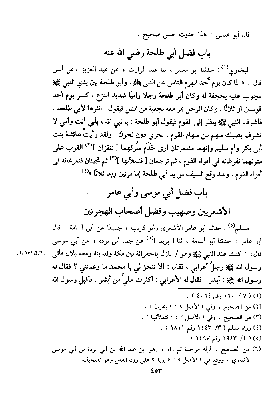 مُسلم: حَدثنَا أَبُو عَامر الْأَشْعَرِيّ وَأَبُو كريب، جَمِيعًا عَن أبي أُسَامَة. قَالَ أَبُو عَامر: حَدثنَا أَبُو أُسَامَة، ثَنَا [بريد] عَن جده أبي بردة، عَن أبي مُوسَى قَالَ: " كنت عِنْد النَّبِي - صَلَّى اللَّهُ عَلَيْهِ وَسَلَّم َ - وَهُوَ / نَازل بالجعرانة بَين مَكَّة وَالْمَدينَة وَمَعَهُ بِلَال فَأتى رَسُول الله - صَلَّى اللَّهُ عَلَيْهِ وَسَلَّم َ - رجل أَعْرَابِي، فَقَالَ: أَلا تنجز لي يَا مُحَمَّد مَا وَعَدتنِي؟ فَقَالَ لَهُ رَسُول الله - صَلَّى اللَّهُ عَلَيْهِ وَسَلَّم َ -: أبشر. فَقَالَ لَهُ الْأَعرَابِي: أكثرت عَليّ من أبشر. فَأقبل رَسُول الله
