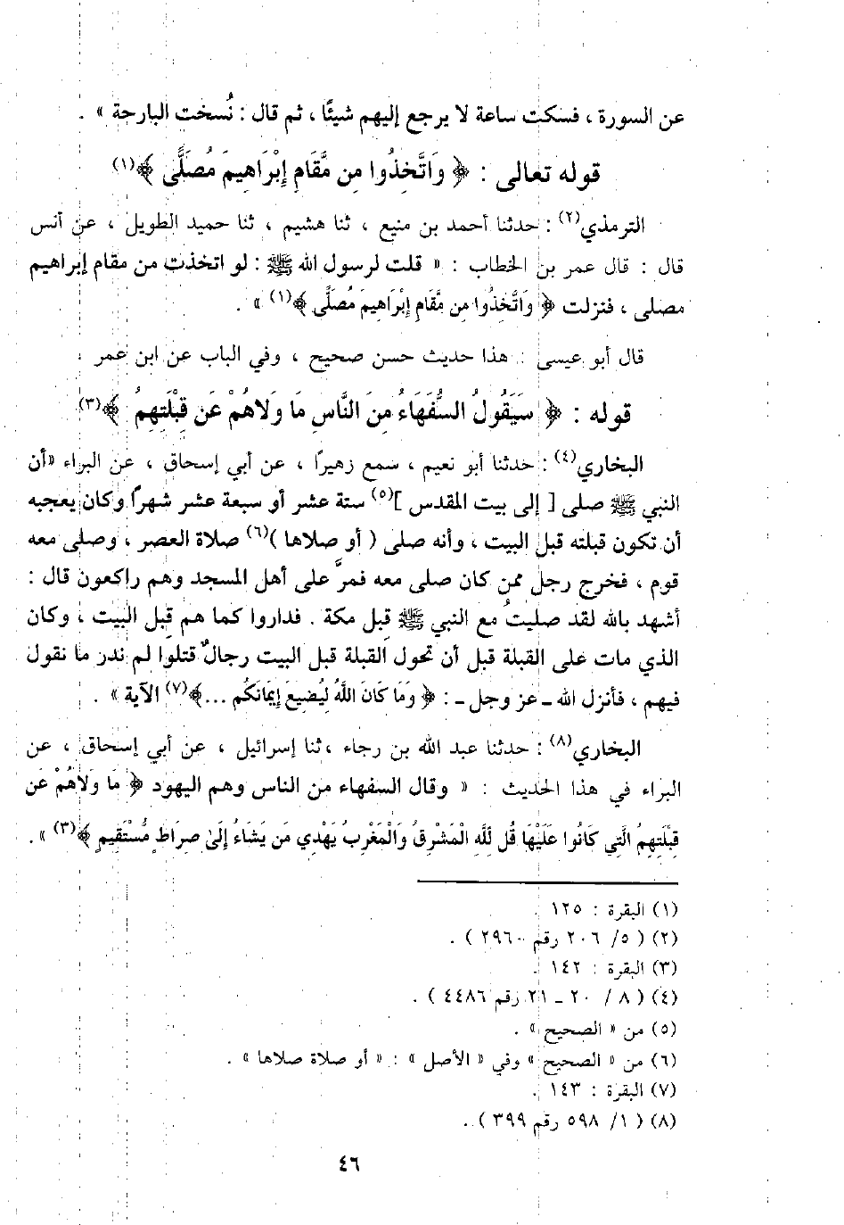البُخَارِيّ: حَدثنَا عبد الله بن رَجَاء، ثَنَا إِسْرَائِيل، عَن أبي إِسْحَاق، عَن الْبَراء فِي هَذَا الحَدِيث: " وَقَالَ السُّفَهَاء من النَّاس وهم الْيَهُود {مَا ولاهم عَن قبلتهم الَّتِي كَانُوا عَلَيْهَا قل لله الْمشرق وَالْمغْرب يهدي من يَشَاء إِلَى صِرَاط مُسْتَقِيم} ".