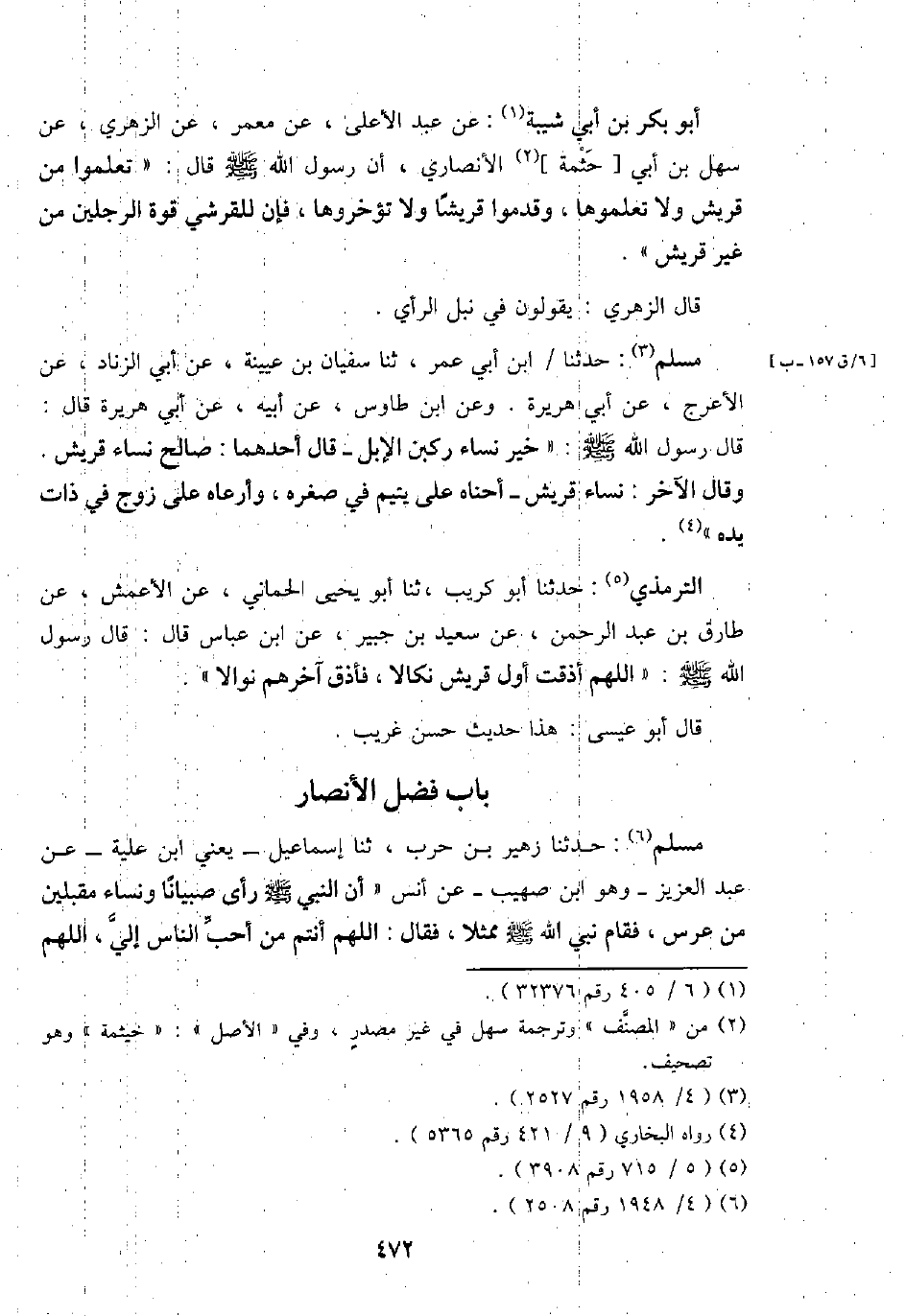 مُسلم: حَدثنَا / ابْن أبي عمر، ثَنَا سُفْيَان بن عُيَيْنَة، عَن أبي الزِّنَاد، عَن الْأَعْرَج، عَن أبي هُرَيْرَة. وَعَن ابْن طَاوس، عَن أَبِيه، عَن أبي هُرَيْرَة قَالَ: قَالَ رَسُول الله - صَلَّى اللَّهُ عَلَيْهِ وَسَلَّم َ -: " خير نسَاء ركبن الْإِبِل - قَالَ أَحدهمَا: صَالح نسَاء قُرَيْش. وَقَالَ الآخر: نسَاء قُرَيْش _ أحناه على يَتِيم فِي صغره، وأرعاه على زوج فِي ذَات يَده ".