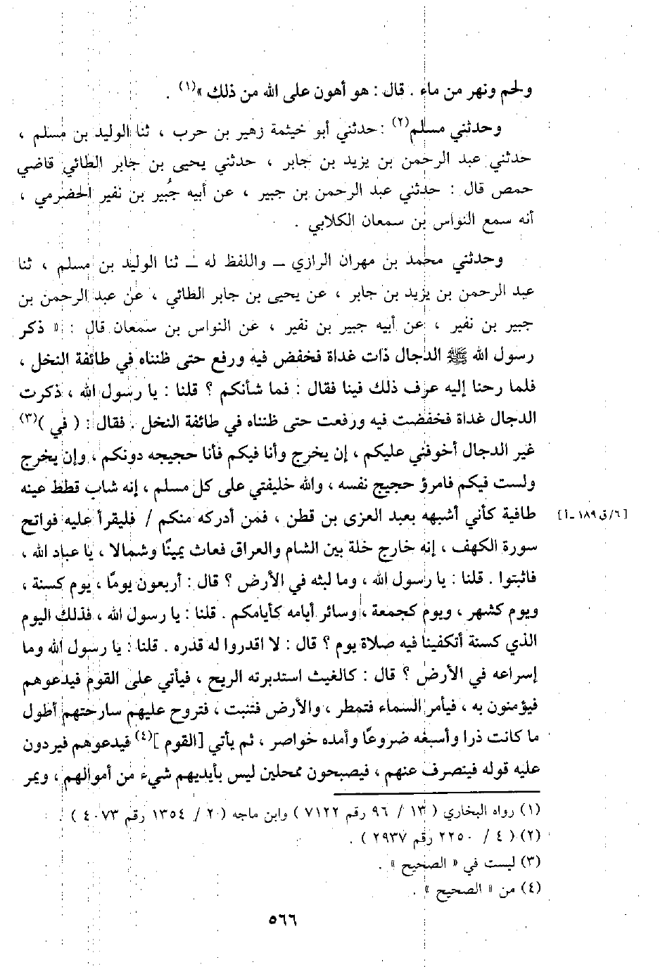 وحَدثني مُسلم: حَدثنِي أَبُو خَيْثَمَة زُهَيْر بن حَرْب، ثَنَا الْوَلِيد بن مُسلم، حَدثنِي عبد الرَّحْمَن بن يزِيد بن جَابر، حَدثنِي يحيى بن جَابر الطَّائِي قَاضِي حمص قَالَ: حَدثنِي عبد الرَّحْمَن بن جُبَير، عَن أَبِيه جُبَير بن نفير الْحَضْرَمِيّ، أَنه سمع النواس بن سمْعَان الْكلابِي.