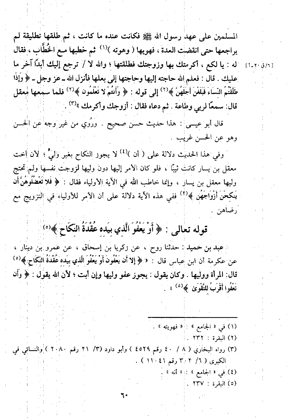 عبد بن حميد: حَدثنَا روح، عَن زَكَرِيَّا بن إِسْحَاق، عَن عَمْرو بن دِينَار، عَن عِكْرِمَة أَن ابْن عَبَّاس قَالَ: " {إِلَّا أَن يعفون أَو يعْفُو الَّذِي بِيَدِهِ عقدَة النِّكَاح} قَالَ: الْمَرْأَة ووليها. وَكَانَ يَقُول: يجوز عَفْو وَليهَا وَإِن أَبَت؛ لِأَن الله يَقُول: {وَأَن تعفوا أقرب للتقوى} ".