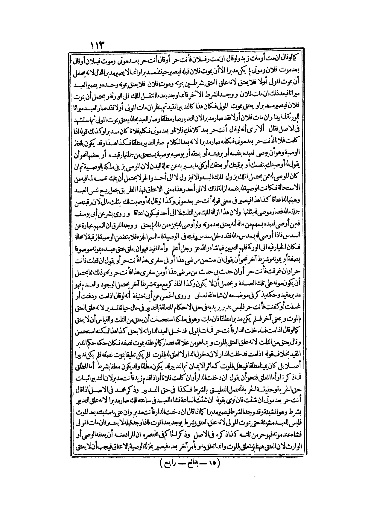 فَكَلَّمَهُ صَارَ مُدَبَّرًا؛ لِأَنَّهُ بَعْدَ الْكَلَامِ صَارَ التَّدْبِيرُ مُطْلَقًا فَكَذَا هَذَا، وَقَدْ يَكُونُ بِلَفْظِ الْوَصِيَّةِ وَهُوَ أَنْ يُوصِيَ لِعَبْدِهِ بِنَفْسِهِ أَوْ بِرَقَبَتِهِ أَوْ بِعِتْقِهِ، أَوْ يُوصِيَهُ بِوَصِيَّةٍ يَسْتَحِقُّ مِنْ جُمْلَتِهَا رَقَبَتَهُ أَوْ بَعْضَهَا، نَحْوُ أَنْ يَقُولَ لَهُ: أَوْصَيْتُك بِنَفْسِك أَوْ بِرَقَبَتِك أَوْ بِعِتْقِك، أَوْ كُلِّ مَا يُعَبَّرُ بِهِ عَنْ جُمْلَةِ الْبَدَنِ؛ لِأَنَّ الْمُوصِيَ يَزِيلُ مِلْكُهُ بِالْوَصِيَّةِ، ثُمَّ إنْ كَانَ الْمُوصَى لَهُ مِمَّنْ يَحْتَمِلُ الْمِلْكَ يَزُولُ الْمِلْكُ إلَيْهِ، وَإِلَّا فَيَزُولُ لَا إلَى أَحَدٍ، وَالْحُرُّ لَا يَحْتَمِلُ أَنْ يَمْلِكَ نَفْسَهُ لِمَا فِيهِ مِنْ الِاسْتِحَالَةِ فَكَانَتْ الْوَصِيَّةُ لَهُ بِنَفْسِهِ إزَالَةَ الْمِلْكِ لَا إلَى أَحَدٍ وَهَذَا مَعْنَى الْإِعْتَاقِ، فَهَذَا الطَّرِيقُ جَعَلَ بَيْعَ نَفْسِ الْعَبْدِ وَهِبَتَهَا لَهُ إعْتَاقًا كَذَا هَذَا، فَيَصِيرُ فِي مَعْنَى قَوْلِهِ: أَنْتَ حُرٌّ بَعْدَ مَوْتِي، وَكَذَا لَوْ قَالَ لَهُ: أَوْصَيْت لَك بِثُلُثِ مَالِي؛ لِأَنَّ رَقَبَتَهُ مِنْ جُمْلَةِ مَا لَهُ فَصَارَ مُوصًى لَهُ بِثُلُثِهَا، وَلِأَنَّ هَذَا إزَالَةُ الْمِلْكِ مِنْ الثُّلُثِ لَا إلَى أَحَدٍ فَيَكُونُ إعْتَاقًا، وَرَوَى بِشْرٌ عَنْ أَبِي يُوسُفَ فِي مَنْ أَوْصَى لِعَبْدِهِ بِسَهْمٍ مِنْ مَالِهِ أَنَّهُ يُعْتَقُ بَعْدَ مَوْتِهِ، وَلَوْ أَوْصَى لَهُ بِجُزْءٍ مِنْ مَالِهِ لَمْ يُعْتَقْ، وَوَجْهُ الْفَرْقِ أَنَّ السَّهْمَ عِبَارَةٌ عَنْ السُّدُسِ فَإِذَا أَوْصَى لَهُ بِسُدُسِ مَالِهِ فَقَدْ دَخَلَ سُدُسُ رَقَبَتِهِ فِي الْوَصِيَّةِ.