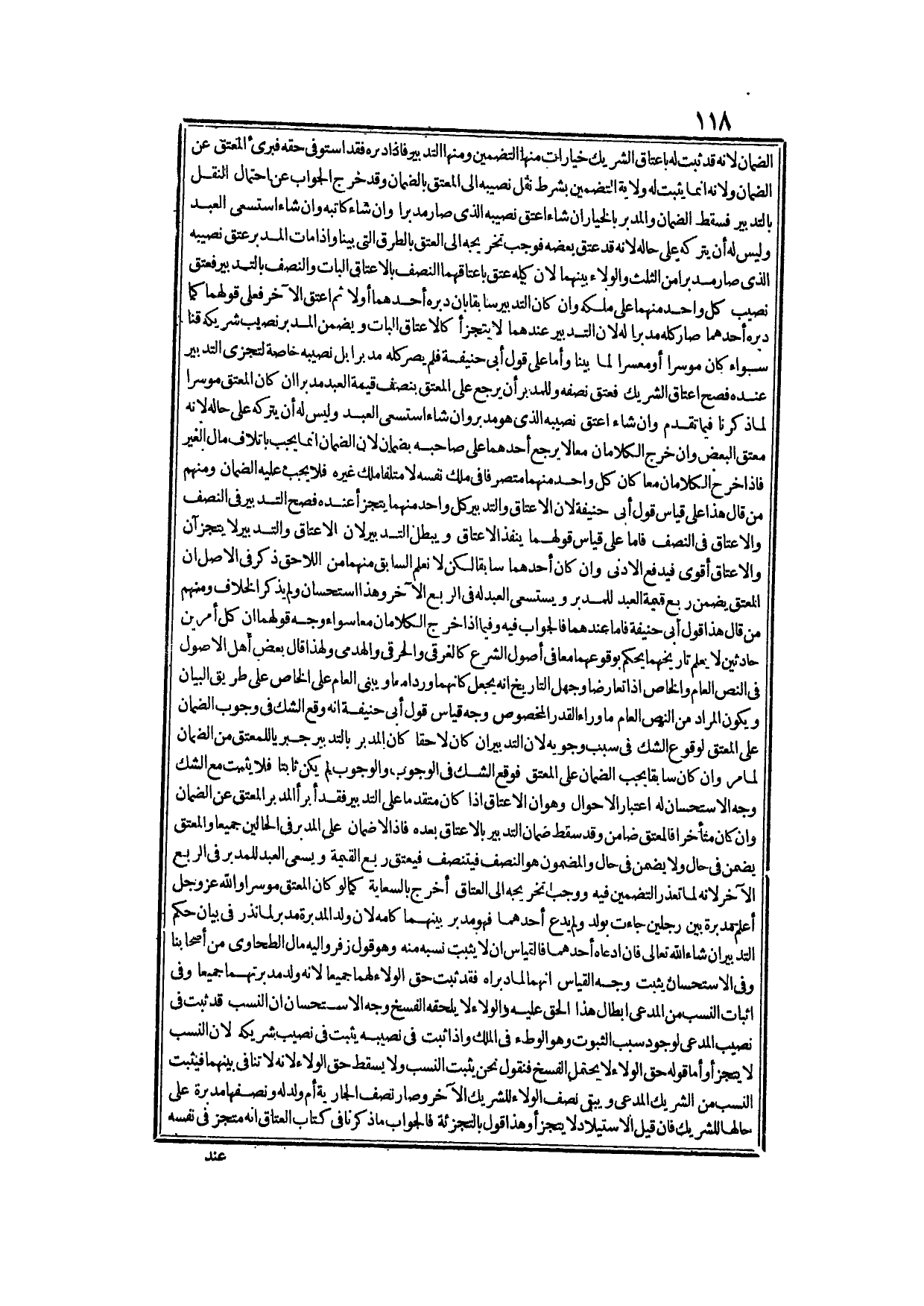 وَأَمَّا عَلَى قَوْلِ أَبِي حَنِيفَةَ فَلَمْ يَصِرْ كُلَّهُ مُدَبَّرًا، بَلْ نَصِيبُهُ خَاصَّةً لِتَجَزُّؤِ التَّدْبِيرِ عِنْدَهُ فَصَحَّ إعْتَاقُ الشَّرِيكِ فَعَتَقَ نِصْفُهُ، وَلِلْمُدَبِّرِ أَنْ يَرْجِعَ عَلَى الْمُعْتِقِ بِنِصْفِ قِيمَةِ الْعَبْدِ مُدَبَّرًا إنْ كَانَ الْمُعْتِقُ مُوسِرًا لِمَا ذَكَرْنَا فِيمَا تَقَدَّمَ، وَإِنْ شَاءَ أَعْتَقَ نَصِيبَهُ الَّذِي هُوَ مُدَبَّرٌ، وَإِنْ شَاءَ اسْتَسْعَى الْعَبْدَ وَلَيْسَ لَهُ أَنْ يَتْرُكَهُ عَلَى حَالِهِ؛ لِأَنَّهُ مُعْتَقُ الْبَعْضِ، وَإِنْ خَرَجَ الْكَلَامَانِ مَعًا لَا يَرْجِعُ أَحَدُهُمَا عَلَى صَاحِبِهِ بِضَمَانٍ؛ لِأَنَّ الضَّمَانَ إنَّمَا يَجِبُ بِإِتْلَافِ مَالِ الْغَيْرِ، فَإِذَا خَرَجَ الْكَلَامَانِ مَعًا كَانَ كُلُّ وَاحِدٍ مِنْهُمَا مُتَصَرِّفًا فِي مِلْكِ نَفَسِهِ لَا مُتْلِفًا مِلْكَ غَيْرِهِ، فَلَا يَجِبُ عَلَيْهِ الضَّمَانُ، وَمِنْهُمْ مَنْ قَالَ هَذَا عَلَى قِيَاسِ قَوْلِ أَبِي حَنِيفَةَ؛ لِأَنَّ الْإِعْتَاقَ وَالتَّدْبِيرَ كُلُّ وَاحِدٍ مِنْهُمَا يَتَجَزَّأُ عِنْدَهُ، فَصَحَّ التَّدْبِيرُ فِي النِّصْفِ، وَالْإِعْتَاقُ فِي النِّصْفِ.