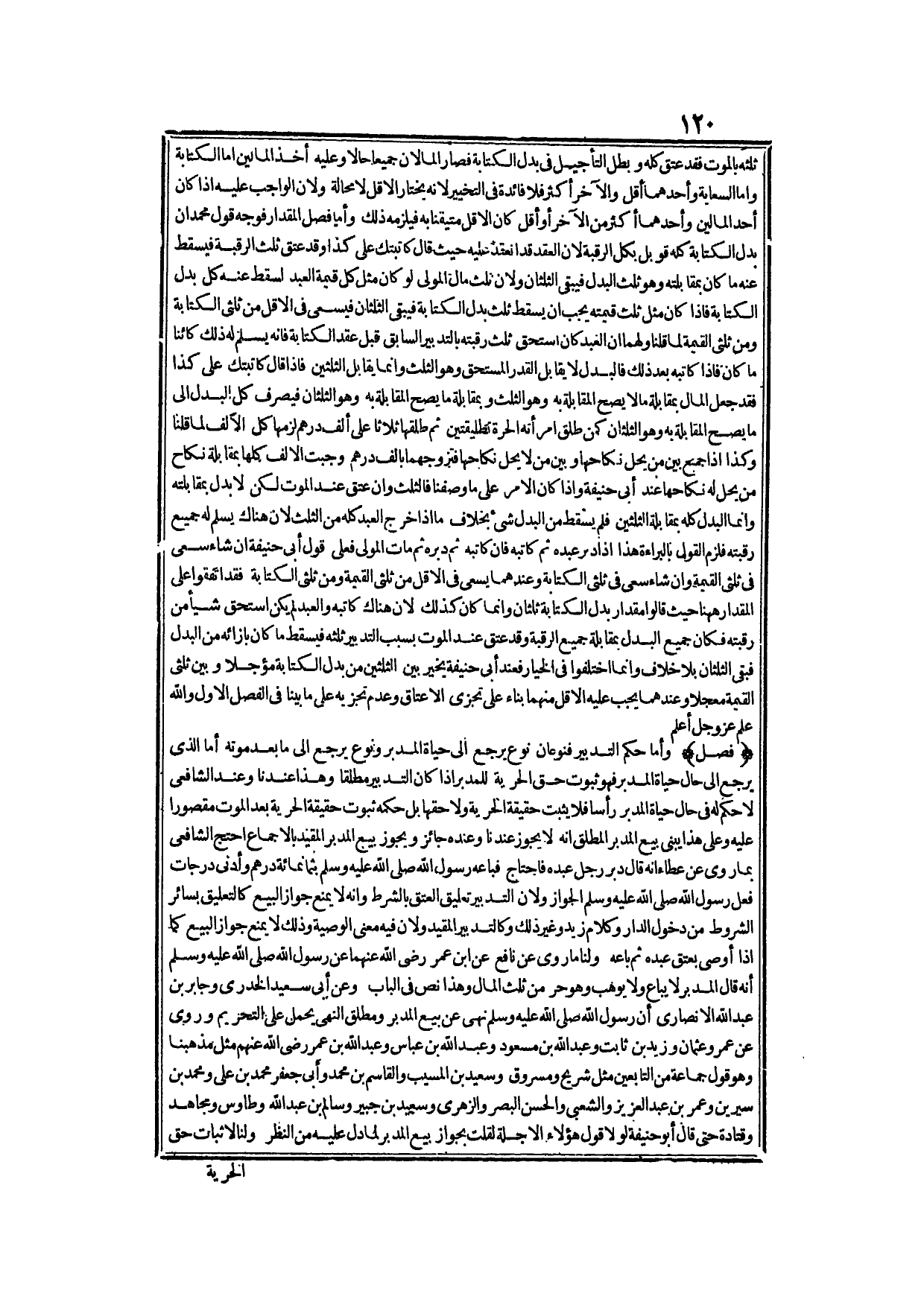 ثُلُثُهُ بِالْمَوْتِ فَقَدْ عَتَقَ كُلُّهُ، وَبَطَلَ التَّأْجِيلُ فِي بَدَلِ الْكِتَابَةِ، فَصَارَ الْمَالَانِ جَمِيعًا حَالًا، وَعَلَيْهِ أَخْذُ الْمَالَيْنِ: إمَّا الْكِتَابَةَ، وَإِمَّا السِّعَايَةَ، وَأَحَدُهُمَا أَقَلُّ وَالْآخَرُ أَكْثَرُ، فَلَا فَائِدَةَ فِي التَّخْيِيرِ؛ لِأَنَّهُ يَخْتَارُ الْأَقَلَّ لَا مَحَالَةَ، وَلِأَنَّ الْوَاجِبَ عَلَيْهِ إذَا كَانَ أَحَدُ الْمَالَيْنِ وَأَحَدُهُمَا أَكْثَرُ مِنْ الْآخَرِ أَوْ أَقَلُّ كَانَ الْأَقَلُّ مُتَيَقَّنًا بِهِ فَيَلْزَمُهُ ذَلِكَ.