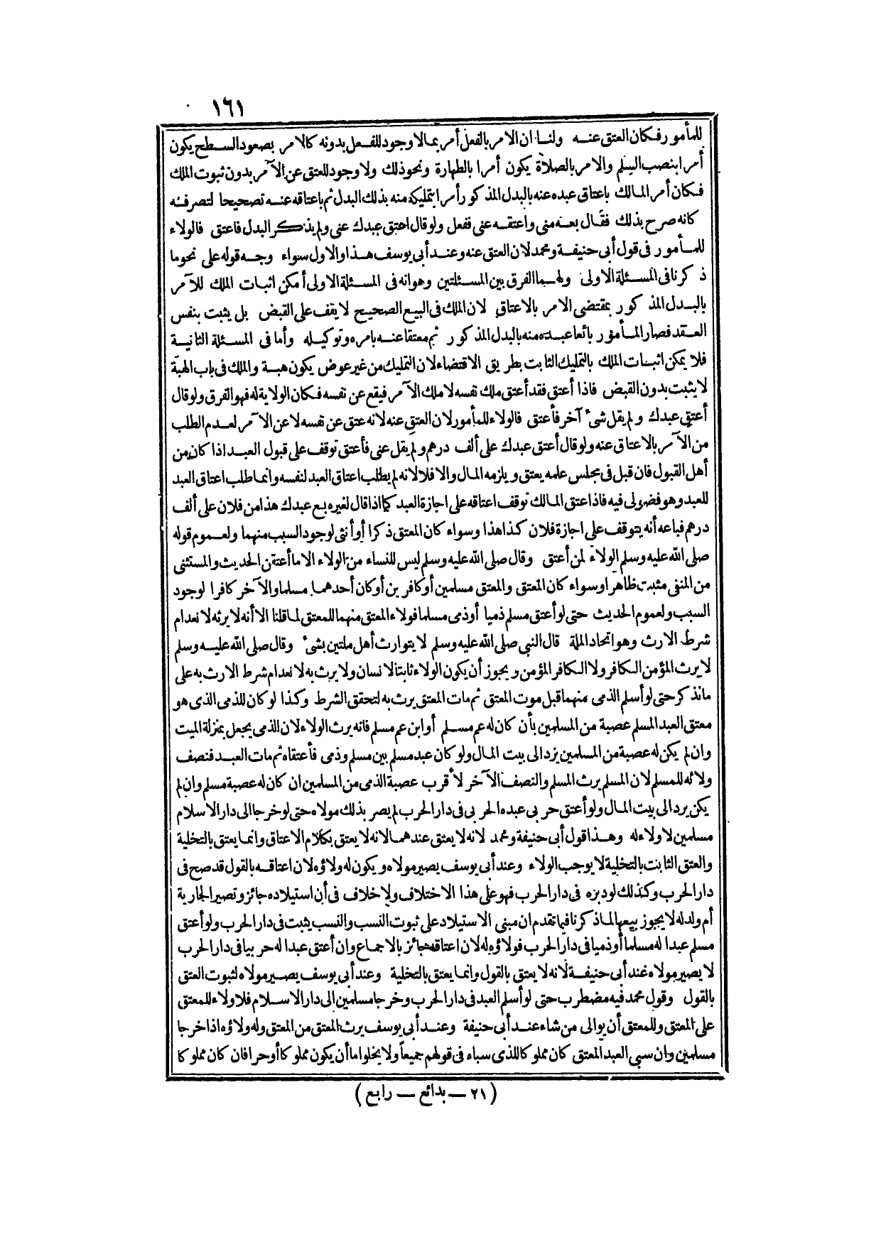 وَعِنْدَ أَبِي يُوسُفَ يَصِيرُ مَوْلَاهُ لِثُبُوتِ الْعِتْقِ بِالْقَوْلِ وَقَوْلُ مُحَمَّدٍ فِيهِ مُضْطَرِبٌ حَتَّى لَوْ أَسْلَمَ الْعَبْدُ فِي دَارِ الْحَرْبِ وَخَرَجَا مُسْلِمَيْنِ إلَى دَارِ الْإِسْلَامِ فَلَا وَلَاءَ لِلْمُعْتِقِ عَلَى الْمُعْتَقِ وَلِلْمُعْتَقِ أَنْ يُوَالِيَ مَنْ شَاءَ عِنْدَ أَبِي حَنِيفَةَ، وَعِنْدَ أَبِي يُوسُفَ يَرِثُ الْمُعْتِقُ مِنْ الْمُعْتَقِ وَلَهُ وَلَاؤُهُ إذَا خَرَجَا مُسْلِمَيْنِ، وَإِنْ سُبِيَ الْعَبْدُ الْمُعْتَقُ كَانَ مَمْلُوكًا لِلَّذِي سَبَاهُ فِي قَوْلِهِمْ جَمِيعًا وَلَا يَخْلُو إمَّا أَنْ يَكُونَ مَمْلُوكًا، أَوْ حُرًّا، فَإِنْ كَانَ مَمْلُوكًا