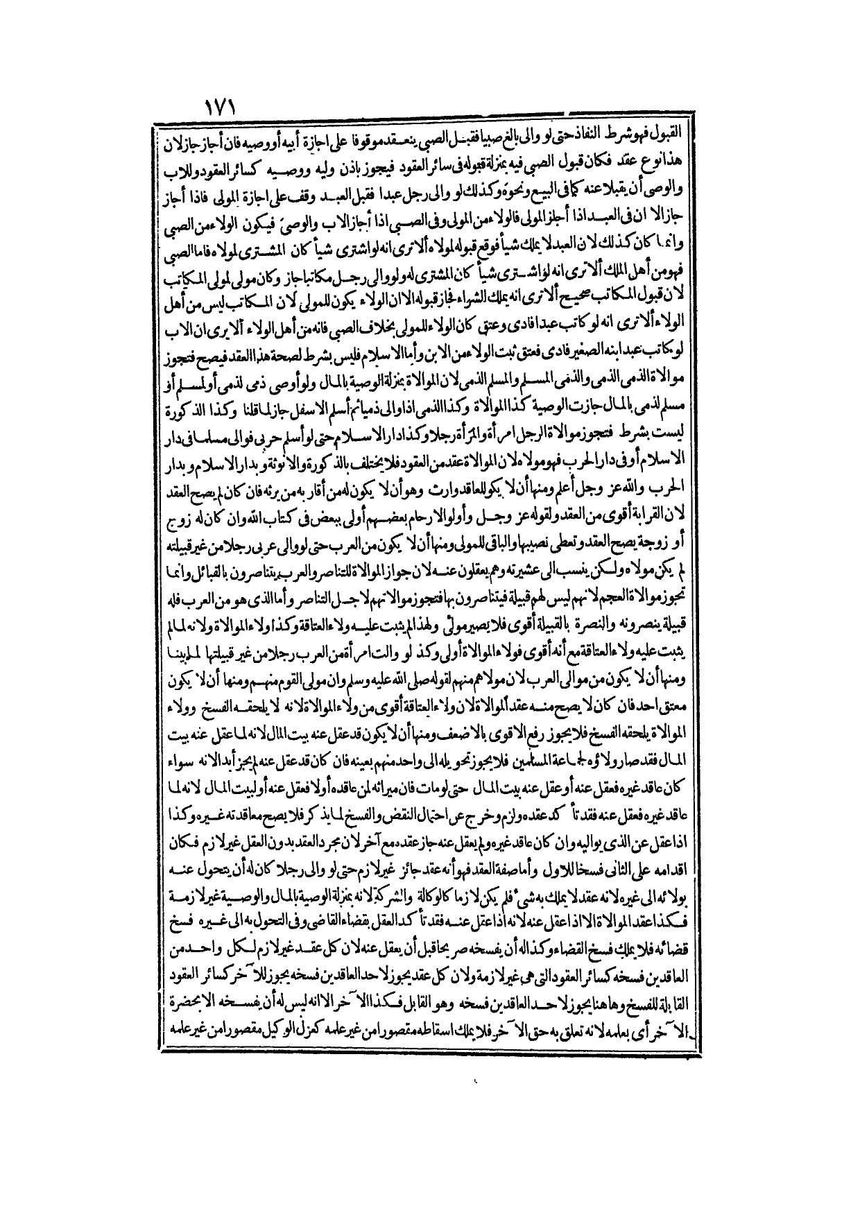 الْقَبُولِ فَهُوَ شَرْطُ النَّفَاذِ حَتَّى لَوْ وَالَى بَالِغٌ صَبِيًّا فَقَبِلَ الصَّبِيُّ يَنْعَقِدُ مَوْقُوفًا عَلَى إجَازَةِ أَبِيهِ أَوْ وَصِيِّهِ، فَإِنْ أَجَازَ جَازَ؛ لِأَنَّ هَذَا نَوْعُ عَقْدٍ فَكَانَ قَبُولُ الصَّبِيِّ فِيهِ بِمَنْزِلَةِ قَبُولِهِ فِي سَائِرِ الْعُقُودِ، فَيَجُوزُ بِإِذْنِ وَلِيِّهِ وَوَصِيِّهِ كَسَائِرِ الْعُقُودِ، وَلِلْأَبِ وَالْوَصِيِّ أَنْ يَقْبَلَا عَنْهُ كَمَا فِي الْبَيْعِ وَنَحْوِهِ، وَكَذَلِكَ لَوْ وَالَى رَجُلٌ عَبْدًا فَقَبِلَ الْعَبْدُ وَقَفَ عَلَى إجَازَةِ الْمَوْلَى، فَإِذَا أَجَازَ جَازَ، إلَّا أَنَّ فِي الْعَبْدِ إذَا أَجَازَ الْمَوْلَى فَالْوَلَاءُ مِنْ الْمَوْلَى، وَفِي الصَّبِيِّ إذَا أَجَازَ الْأَبُ وَالْوَصِيُّ فَيَكُونُ الْوَلَاءُ مِنْ الصَّبِيِّ، وَإِنَّمَا كَانَ كَذَلِكَ؛ لِأَنَّ الْعَبْدَ لَا يَمْلِكُ شَيْئًا فَوَقَعَ قَبُولُهُ لِمَوْلَاهُ.