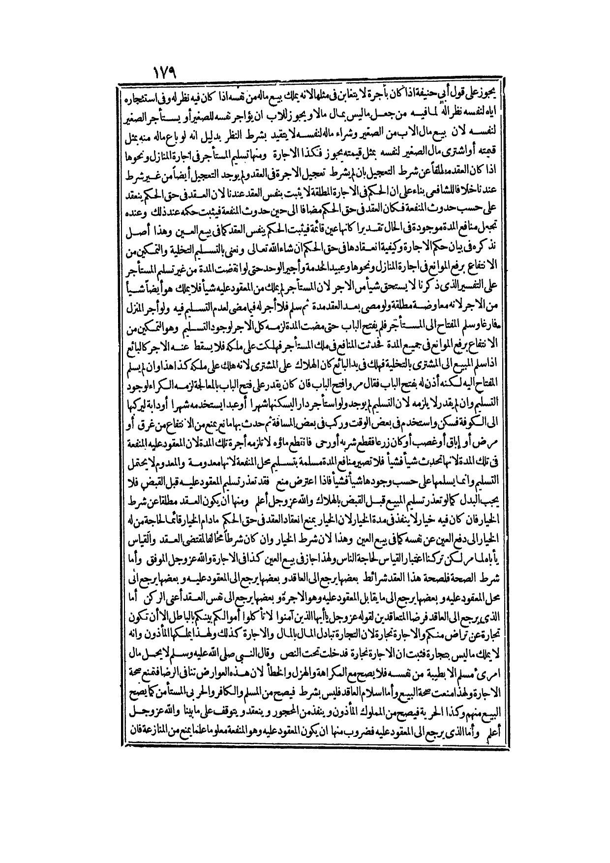 وَعِنْدَهُ تُجْعَلُ مَنَافِعُ الْمُدَّةِ مَوْجُودَةً فِي الْحَالِ تَقْدِيرًا كَأَنَّهَا عَيْنٌ قَائِمَةٌ فَيَثْبُتُ الْحُكْمُ بِنَفْسِ الْعَقْدِ، كَمَا فِي بَيْعِ الْعَيْنِ، وَهَذَا أَصْلٌ نَذْكُرُهُ فِي بَيَانِ حُكْمِ الْإِجَارَةِ وَكَيْفِيَّةِ انْعِقَادِهَا فِي حَقِّ الْحُكْمِ إنْ شَاءَ اللَّهُ تَعَالَى وَنَعْنِي بِالتَّسْلِيمِ التَّخْلِيَةَ وَالتَّمْكِينَ مِنْ الِانْتِفَاعِ بِرَفْعِ الْمَوَانِعِ فِي إجَارَةِ الْمَنَازِلِ وَنَحْوِهَا وَعَبِيدِ الْخِدْمَةِ وَأَجِيرِ الْوَحْدِ، حَتَّى لَوْ انْقَضَتْ الْمُدَّةُ مِنْ غَيْرِ تَسْلِيمِ الْمُسْتَأْجَرِ عَلَى التَّفْسِيرِ الَّذِي ذَكَرْنَا لَا يَسْتَحِقُّ شَيْئًا مِنْ الْأَجْرِ؛ لِأَنَّ الْمُسْتَأْجِرَ لَمْ يَمْلِكْ مِنْ الْمَعْقُودِ عَلَيْهِ شَيْئًا فَلَا يَمْلِكُ هُوَ أَيْضًا شَيْئًا مِنْ الْأَجْرِ؛ لِأَنَّهُ مُعَاوَضَةٌ مُطْلَقَةٌ، وَلَوْ مَضَى بَعْدَ الْعَقْدِ مُدَّةٌ ثُمَّ سَلَّمَ فَلَا أَجْرَ لَهُ فِيمَا مَضَى لِعَدَمِ التَّسْلِيمِ فِيهِ، وَلَوْ أَجَرَ الْمَنْزِلَ فَارِغًا وَسَلَّمَ الْمِفْتَاحَ إلَى الْمُسْتَأْجِرِ فَلَمْ يُفْتَحْ الْبَابُ حَتَّى مَضَتْ الْمُدَّةُ لَزِمَهُ كُلُّ الْأَجْرِ لِوُجُودِ التَّسْلِيمِ وَهُوَ التَّمْكِينُ مِنْ الِانْتِفَاعِ بِرَفْعِ الْمَوَانِعِ فِي جَمِيعِ الْمُدَّةِ فَحَدَثَتْ الْمَنَافِعُ فِي مِلْكِ الْمُسْتَأْجِرِ فَهَلَكَتْ عَلَى مِلْكِهِ فَلَا يَسْقُطُ عَنْهُ الْأَجْرُ، كَالْبَائِعِ إذَا سَلَّمَ الْمَبِيعَ إلَى الْمُشْتَرِي بِالتَّخْلِيَةِ فَهَلَكَ فِي يَدِ الْبَائِعِ كَانَ الْهَلَاكُ عَلَى الْمُشْتَرِي؛ لِأَنَّهُ هَلَكَ عَلَى مِلْكِهِ، كَذَا هَذَا، وَإِنْ لَمْ يُسَلِّمْ الْمِفْتَاحَ إلَيْهِ لَكِنَّهُ أَذِنَ لَهُ بِفَتْحِ الْبَابِ فَقَالَ: مُرَّ، وَافْتَحْ الْبَابَ فَإِنْ كَانَ يَقْدِرُ عَلَى فَتْحِ الْبَابِ بِالْمُعَالَجَةِ لَزِمَهُ الْكِرَاءُ لِوُجُودِ التَّسْلِيمِ وَإِنْ لَمْ يَقْدِرْ لَا يَلْزَمْهُ؛ لِأَنَّ التَّسْلِيمَ لَمْ يُوجَدْ، وَلَوْ اسْتَأْجَرَ دَارًا لِيَسْكُنَهَا شَهْرًا أَوْ عَبْدًا يَسْتَخْدِمُهُ شَهْرًا أَوْ دَابَّةً لِيَرْكَبَهَا إلَى الْكُوفَةِ فَسَكَنَ وَاسْتَخْدَمَ فِي بَعْضِ الْوَقْتِ وَرَكِبَ فِي بَعْضِ الْمَسَافَةِ ثُمَّ حَدَثَ بِهَا مَانِعٌ يَمْنَعُ مِنْ الِانْتِفَاعِ مِنْ غَرَقٍ أَوْ مَرَضٍ أَوْ إبَاقٍ أَوْ غَصْبٍ أَوْ كَانَ زَرْعًا فَقَطَعَ شُرْبَهُ أَوْ رَحًى فَانْقَطَعَ مَاؤُهُ لَا تَلْزَمُهُ أُجْرَةُ تِلْكَ الْمُدَّةِ؛ لِأَنَّ الْمَعْقُودَ عَلَيْهِ الْمَنْفَعَةُ فِي تِلْكَ الْمُدَّةِ؛ لِأَنَّهَا تَحْدُثُ شَيْئًا فَشَيْئًا فَلَا تَصِيرُ مَنَافِعُ الْمُدَّةِ مُسَلَّمَةً بِتَسْلِيمِ مَحَلِّ الْمَنْفَعَةِ؛ لِأَنَّهَا مَعْدُومَةٌ، وَالْمَعْدُومُ لَا يَحْتَمِلُ التَّسْلِيمَ، وَإِنَّمَا يُسَلِّمُهَا عَلَى حَسَبِ وُجُودِهَا شَيْئًا فَشَيْئًا، فَإِذَا اعْتَرَضَ مَنْعٌ فَقَدْ تَعَذَّرَ تَسْلِيمُ الْمَعْقُودِ عَلَيْهِ قَبْلَ الْقَبْضِ فَلَا يَجِبُ الْبَدَلُ كَمَا لَوْ تَعَذَّرَ تَسْلِيمُ الْمَبِيعِ قَبْلَ الْقَبْضِ بِالْهَلَاكِ وَاَللَّهُ عَزَّ وَجَلَّ أَعْلَمُ.
