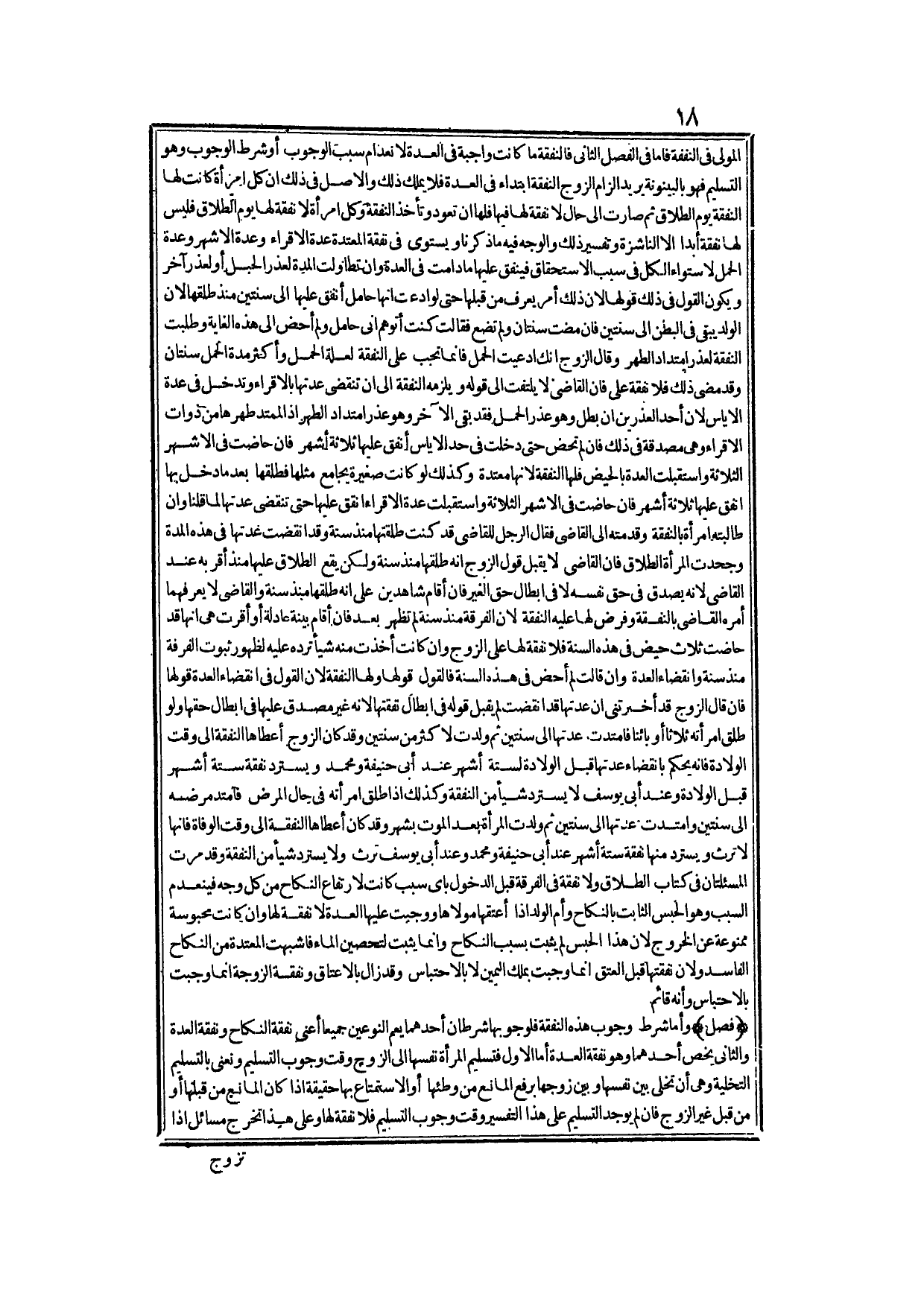 وَأَمَّا شَرْطُ وُجُوبِ هَذِهِ النَّفَقَةِ فَلِوُجُوبِهَا شَرْطَانِ: أَحَدُهُمَا يَعُمُّ النَّوْعَيْنِ جَمِيعًا أَعْنِي: نَفَقَةَ النِّكَاحِ وَنَفَقَةَ الْعِدَّةِ.