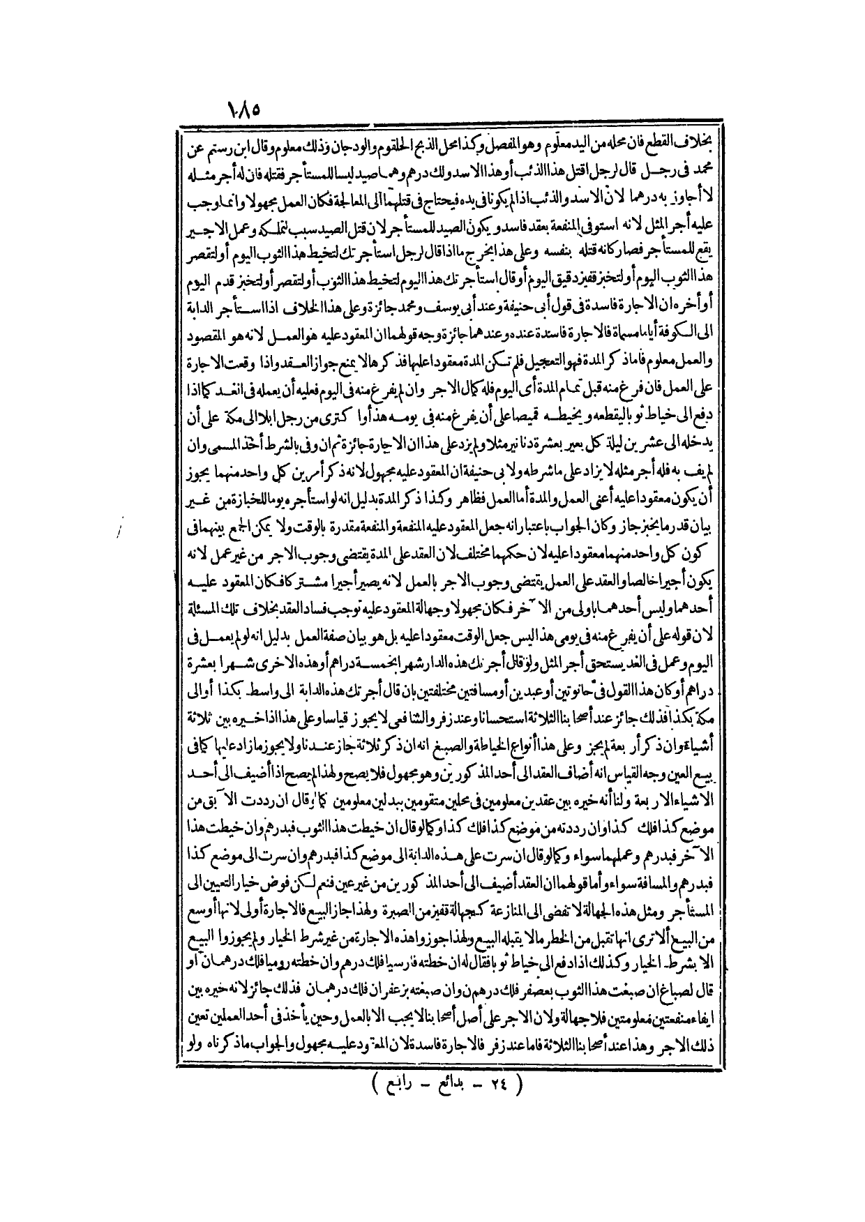 بِخِلَافِ الْقَطْعِ فَإِنَّ مَحَلَّهُ مِنْ الْيَدِ مَعْلُومٌ وَهُوَ الْمَفْصِلُ، وَكَذَا مَحَلُّ الذَّبْحِ الْحُلْقُومُ وَالْوَدَجَانِ وَذَلِكَ مَعْلُومٌ، وَقَالَ ابْنُ رُسْتُمَ عَنْ مُحَمَّدٍ فِي رَجُلٍ قَالَ لِرَجُلٍ اُقْتُلْ هَذَا الذِّئْبَ أَوْ هَذَا الْأَسَدَ وَلَك دِرْهَمٌ وَهُمَا صَيْدٌ لَيْسَا لِلْمُسْتَأْجِرِ فَقَتَلَهُ: فَإِنَّ لَهُ أَجْرَ مِثْلِهِ لَا أُجَاوِزُ بِهِ دِرْهَمًا؛ لِأَنَّ الْأَسَدَ وَالذِّئْبَ إذَا لَمْ يَكُونَا فِي يَدِهِ فَيُحْتَاجَ فِي قَتْلِهِمَا إلَى الْمُعَالَجَةِ فَكَانَ الْعَمَلُ مَجْهُولًا، وَإِنَّمَا وَجَبَ عَلَيْهِ أَجْرُ الْمِثْلِ؛ لِأَنَّهُ اسْتَوْفَى الْمَنْفَعَةَ بِعَقْدٍ فَاسِدٍ وَيَكُونُ الصَّيْدُ لِلْمُسْتَأْجِرِ؛ لِأَنَّ قَتْلَ الصَّيْدِ سَبَبٌ لِتَمَلُّكِهِ وَعَمَلُ الْأَجِيرِ يَقَعُ لِلْمُسْتَأْجِرِ فَصَارَ كَأَنَّهُ قَتَلَهُ بِنَفْسِهِ، وَعَلَى هَذَا يُخَرَّجُ مَا إذَا قَالَ لِرَجُلٍ: اسْتَأْجَرْتُك لِتَخِيطَ هَذَا الثَّوْبَ الْيَوْمَ، أَوْ لِتُقَصِّرَ هَذَا الثَّوْبَ الْيَوْمَ، أَوْ لِتَخْبِزَ قَفِيزَ دَقِيقٍ الْيَوْمَ، أَوْ قَالَ: اسْتَأْجَرْتُك هَذَا الْيَوْمَ لِتَخِيطَ هَذَا الثَّوْبَ، أَوْ لِتُقَصِّرَ، أَوْ لِتَخْبِزَ قَدَّمَ الْيَوْمَ أَوْ أَخَّرَهُ أَنَّ الْإِجَارَةَ فَاسِدَةٌ فِي قَوْلِ أَبِي حَنِيفَةَ، وَعِنْدَ أَبِي يُوسُفَ وَمُحَمَّدٍ جَائِزَةٌ، وَعَلَى هَذَا الْخِلَافِ إذَا اسْتَأْجَرَ الدَّابَّةَ إلَى الْكُوفَةِ أَيَّامًا مُسَمَّاةً فَالْإِجَارَةُ فَاسِدَةٌ عِنْدَهُ، وَعِنْدَهُمَا جَائِزَةٌ، وَجْهُ قَوْلِهِمَا إنَّ الْمَعْقُودَ عَلَيْهِ هُوَ الْعَمَلُ؛ لِأَنَّهُ هُوَ الْمَقْصُودُ وَالْعَمَلُ مَعْلُومٌ، فَأَمَّا ذِكْرُ الْمُدَّةِ فَهُوَ التَّعْجِيلُ فَلَمْ تَكُنْ الْمُدَّةُ مَعْقُودًا عَلَيْهَا، فَذِكْرُهَا لَا يَمْنَعُ جَوَازَ الْعَقْدِ، وَإِذَا وَقَعَتْ الْإِجَارَةُ عَلَى الْعَمَلِ فَإِنْ فَرَغَ مِنْهُ قَبْلَ تَمَامِ الْمُدَّةِ أَيْ الْيَوْمَ فَلَهُ كَمَالُ الْأَجْرِ، وَإِنْ لَمْ يَفْرُغْ مِنْهُ فِي الْيَوْمِ فَعَلَيْهِ أَنْ يَعْمَلَهُ فِي الْغَدِ، كَمَا إذَا دَفَعَ إلَى خَيَّاطٍ ثَوْبًا لِيُقَطِّعَهُ وَيَخِيطَهُ قَمِيصًا عَلَى أَنْ يَفْرُغَ مِنْهُ فِي يَوْمِهِ هَذَا، أَوْ اكْتَرَى مِنْ رَجُلٍ إبِلًا إلَى مَكَّةَ عَلَى أَنْ يُدْخِلَهُ إلَى عِشْرِينَ لَيْلَةٍ كُلُّ بَعِيرٍ بِعَشْرَةِ دَنَانِيرَ مَثَلًا وَلَمْ يَزِدْ عَلَى هَذَا أَنَّ الْإِجَارَةَ جَائِزَةٌ، ثُمَّ إنْ وَفَى بِالشَّرْطِ أَخَذَ الْمُسَمَّى وَإِنْ لَمْ يَفِ بِهِ فَلَهُ أَجْرُ مِثْلِهِ لَا يُزَادُ عَلَى مَا شَرَطَهُ.