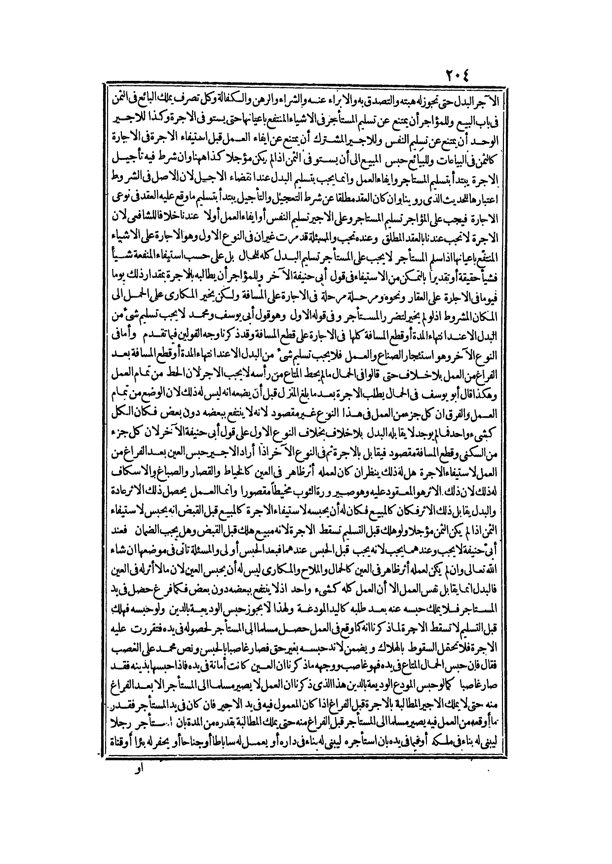ثُمَّ فِي النَّوْعِ الْآخَرِ إذَا. أَرَادَ الْأَجِيرُ حَبْسَ الْعَيْنِ بَعْدَ الْفَرَاغِ مِنْ الْعَمَلِ لِاسْتِيفَاءِ الْأُجْرَةِ هَلْ لَهُ ذَلِكَ؟ يُنْظَرُ إنْ كَانَ لِعَمَلِهِ أَثَرٌ ظَاهِرٌ فِي الْعَيْنِ كَالْخَيَّاطِ وَالْقَصَّارِ وَالصَّبَّاغِ وَالْإِسْكَافِ لَهُ ذَلِكَ؛ لِأَنَّ ذَلِكَ الْأَثَرَ هُوَ الْمَعْقُودُ عَلَيْهِ وَهُوَ صَيْرُورَةُ الثَّوْبِ مَخِيطًا مَقْصُورًا.