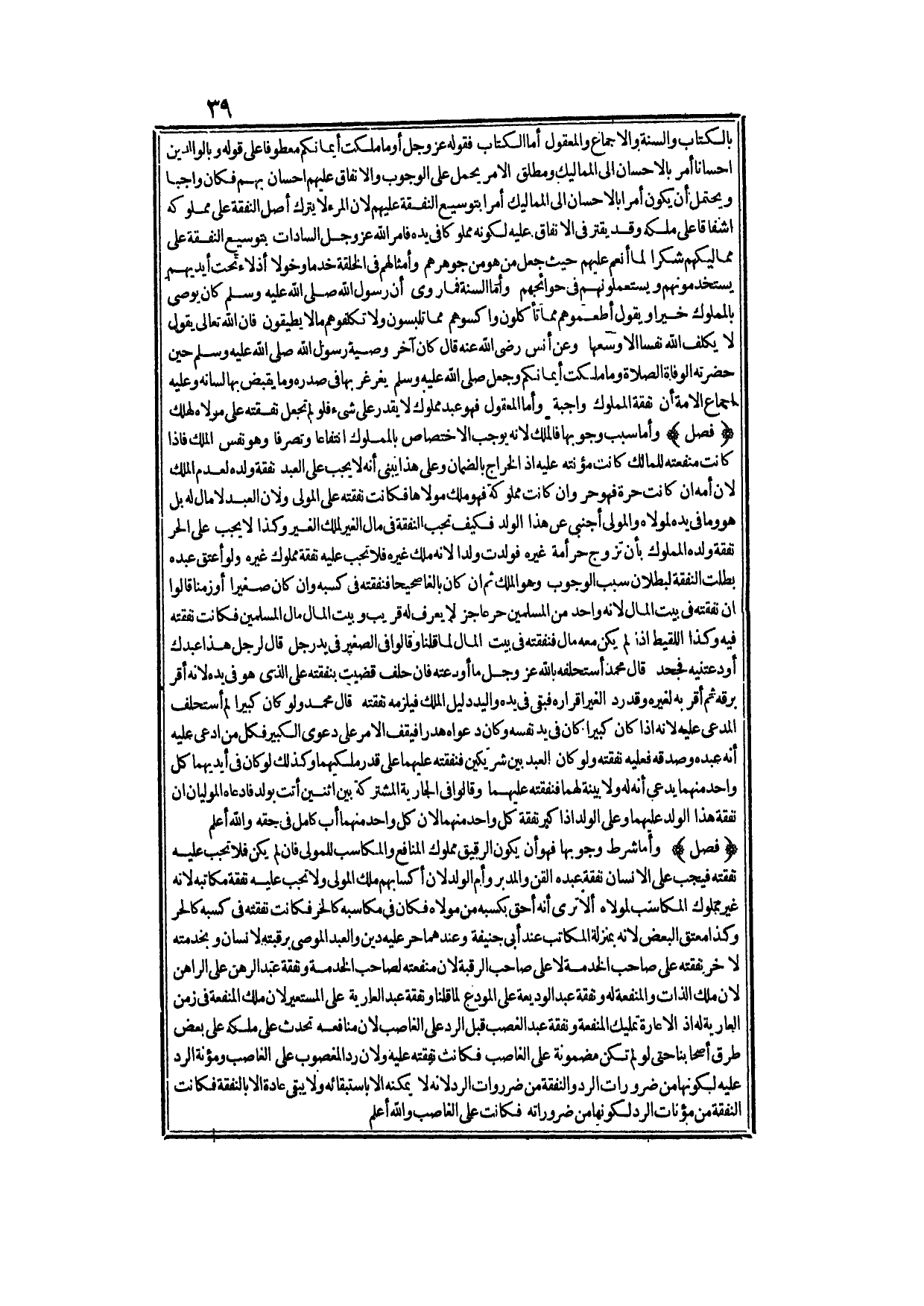 وَأَمَّا السُّنَّةُ فَمَا رُوِيَ أَنَّ رَسُولَ اللَّهِ - صَلَّى اللَّهُ عَلَيْهِ وَسَلَّمَ - كَانَ يُوصِي بِالْمَمْلُوكِ خَيْرًا وَيَقُولُ «أَطْعِمُوهُمْ مِمَّا تَأْكُلُونَ وَاكْسُوهُمْ مِمَّا تَلْبَسُونَ وَلَا تُكَلِّفُوهُمْ مَا لَا يُطِيقُونَ فَإِنَّ اللَّهَ تَعَالَى يَقُولُ {لا يُكَلِّفُ اللَّهُ نَفْسًا إِلا وُسْعَهَا} [البقرة: 286] » وَعَنْ أَنَسٍ - رَضِيَ اللَّهُ عَنْهُ - قَالَ كَانَ آخِرُ وَصِيَّةِ رَسُولِ اللَّهِ - صَلَّى اللَّهُ عَلَيْهِ وَسَلَّمَ - حِينَ حَضَرَتْهُ الْوَفَاةُ «الصَّلَاةَ وَمَا مَلَكَتْ أَيْمَانُكُمْ وَجَعَلَ - صَلَّى اللَّهُ عَلَيْهِ وَسَلَّمَ - يُغَرْغِرُ بِهَا فِي صَدْرِهِ وَمَا يَقْبِضُ بِهَا لِسَانَهُ» وَعَلَيْهِ إجْمَاعُ الْأُمَّةِ أَنَّ نَفَقَةَ الْمَمْلُوكِ وَاجِبَةٌ، وَأَمَّا الْمَعْقُولُ فَهُوَ عَبْدٌ مَمْلُوكٌ لَا يَقْدِرُ عَلَى شَيْءٍ فَلَوْ لَمْ تُجْعَلْ نَفَقَتُهُ عَلَى مَوْلَاهُ؛ لَهَلَكَ.