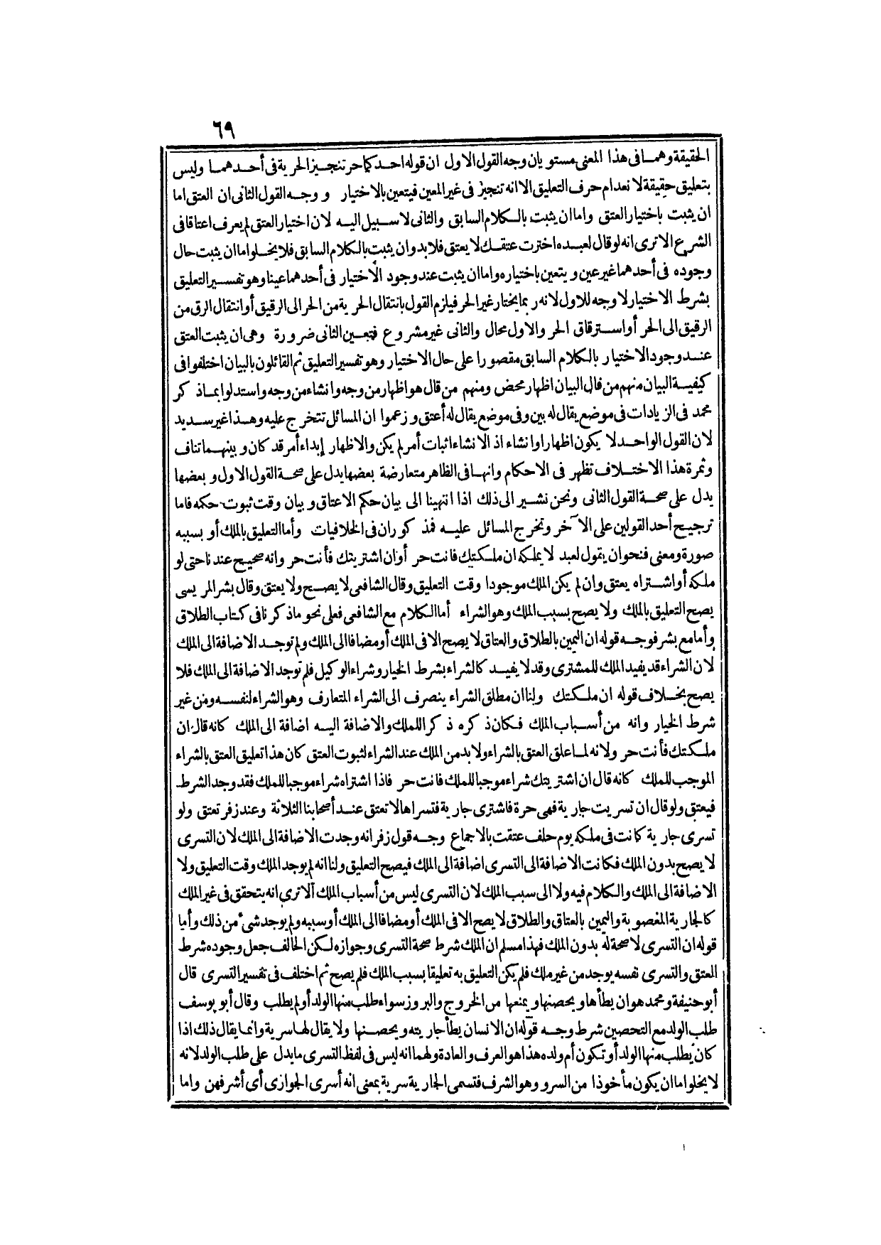 الْحَقِيقَةِ وَهُمَا فِي هَذَا الْمَعْنَى مُسْتَوِيَانِ، وَجْهُ الْقَوْلِ الْأَوَّلِ أَنَّ قَوْلَهُ أَحَدُكُمَا حُرٌّ تَنْجِيزُ الْحُرِّيَّةِ فِي أَحَدِهِمَا وَلَيْسَ بِتَعْلِيقٍ حَقِيقَةً لِانْعِدَامِ حَرْفِ التَّعْلِيقِ إلَّا أَنَّهُ تَنْجِيزٌ فِي غَيْرِ الْمُعَيَّنِ فَيَتَعَيَّنُ بِالِاخْتِيَارِ، وَوَجْهُ الْقَوْلِ الثَّانِي أَنَّ الْعِتْقَ إمَّا أَنْ يَثْبُتَ بِاخْتِيَارِ الْعِتْقِ وَإِمَّا أَنْ يَثْبُتَ بِالْكَلَامِ السَّابِقِ، وَالثَّانِي لَا سَبِيلَ إلَيْهِ؛ لِأَنَّ اخْتِيَارَ الْعِتْقِ لَمْ يُعْرَفْ إعْتَاقًا فِي الشَّرْعِ؛ أَلَا تَرَى أَنَّهُ لَوْ قَالَ لِعَبْدِهِ: اخْتَرْت عِتْقَك لَا يَعْتِقُ فَلَا بُدَّ وَأَنْ يَثْبُتَ بِالْكَلَامِ السَّابِقِ فَلَا يَخْلُو: إمَّا أَنْ يَثْبُتَ حَالَ وُجُودِهِ فِي أَحَدِهِمَا غَيْرُ عَيْنٍ وَيَتَعَيَّنُ بِاخْتِيَارِهِ وَإِمَّا أَنْ يَثْبُتَ عِنْدَ وُجُودِ الِاخْتِيَارِ فِي أَحَدِهِمَا عَيْنًا وَهُوَ تَفْسِيرُ التَّعْلِيقِ بِشَرْطِ الِاخْتِيَارِ لَا وَجْهَ لِلْأَوَّلِ؛ لِأَنَّهُ رُبَّمَا يَخْتَارُ غَيْرَ الْحُرِّ فَيَلْزَمُ الْقَوْلُ بِانْتِقَالِ الْحُرِّيَّةِ مِنْ الْحُرِّ إلَى الرَّقِيقِ، أَوْ انْتِقَالِ الرِّقِّ مِنْ الرَّقِيقِ إلَى الْحُرِّ أَوْ اسْتِرْقَاقِ الْحُرِّ وَالْأَوَّلُ مُحَالٌ وَالثَّانِي غَيْرُ مَشْرُوعٍ فَتَعَيَّنَ الثَّانِي ضَرُورَةً وَهِيَ أَنْ يَثْبُتَ الْعِتْقُ عِنْدَ وُجُودِ الِاخْتِيَارِ بِالْكَلَامِ السَّابِقِ مَقْصُورًا عَلَى حَالِ الِاخْتِيَارِ وَهُوَ تَفْسِيرُ التَّعْلِيقِ ثُمَّ الْقَائِلُونَ بِالْبَيَانِ اخْتَلَفُوا فِي كَيْفِيَّةِ الْبَيَانِ مِنْهُمْ مَنْ قَالَ: الْبَيَانُ إظْهَارٌ مَحْضٌ وَمِنْهُمْ مِنْ قَالَ: هُوَ إظْهَارٌ مِنْ وَجْهٍ وَإِنْشَاءٌ مِنْ وَجْهٍ وَاسْتَدَلُّوا بِمَا ذَكَرَ مُحَمَّدٌ فِي الزِّيَادَاتِ فِي مَوْضِعٍ يُقَالُ لَهُ: بَيِّنْ، وَفِي مَوْضِعٍ يُقَالُ لَهُ: أَعْتِقْ، وَزَعَمُوا أَنَّ الْمَسَائِلَ تَتَخَرَّجُ عَلَيْهِ وَهَذَا غَيْرُ سَدِيدٍ؛ لِأَنَّ الْقَوْلَ الْوَاحِدَ لَا يَكُونُ إظْهَارًا وَإِنْشَاءً؛ إذْ الْإِنْشَاءُ إثْبَاتُ أَمْرٍ لَمْ يَكُنْ وَالْإِظْهَارُ إبْدَاءُ أَمْرٍ قَدْ كَانَ وَبَيْنَهُمَا تَنَافٍ وَثَمَرَةُ هَذَا الِاخْتِلَافِ تَظْهَرُ فِي الْأَحْكَامِ وَإِنَّهَا فِي الظَّاهِرِ مُتَعَارِضَةٌ: بَعْضُهَا يَدُلُّ عَلَى صِحَّةِ الْقَوْلِ الْأَوَّلِ وَبَعْضُهَا يَدُلُّ عَلَى صِحَّةِ الْقَوْلِ الثَّانِي وَنَحْنُ نُشِيرُ إلَى ذَلِكَ إذَا انْتَهَيْنَا إلَى بَيَانِ حُكْمِ الْإِعْتَاقِ وَبَيَانِ وَقْتِ ثُبُوتِ حُكْمِهِ فَأَمَّا تَرْجِيحُ أَحَدِ الْقَوْلَيْنِ عَلَى الْآخَرِ وَتَخَرُّجُ الْمَسَائِلِ عَلَيْهِ فَمَذْكُورَانِ فِي الْخِلَافِيَّاتِ.