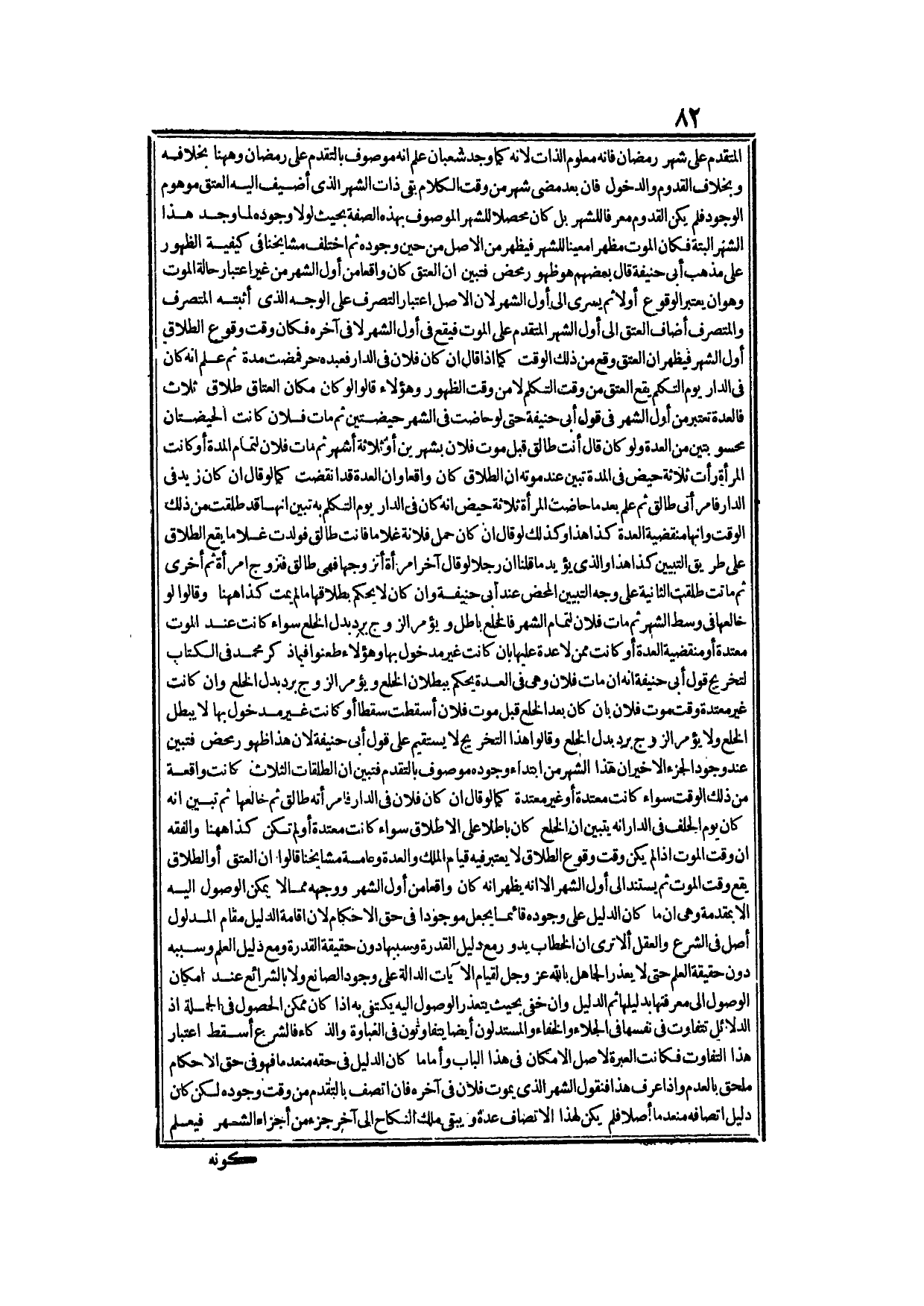 وَأَمَّا مَا كَانَ الدَّلِيلُ فِي حَقِّهِ مُنْعَدِمًا فَهُوَ فِي حَقِّ الْأَحْكَامِ مُلْحَقٌ بِالْعَدَمِ، وَإِذَا عُرِفَ هَذَا فَنَقُولُ: الشَّهْرُ الَّذِي يَمُوتُ فُلَانٌ فِي آخِرِهِ فَإِنْ اتَّصَفَ بِالتَّقَدُّمِ مِنْ وَقْتِ وُجُودِهِ لَكِنْ كَانَ دَلِيلُ اتِّصَافِهِ مُنْعَدِمًا أَصْلًا فَلَمْ يَكُنْ لِهَذَا الِاتِّصَافِ عِدَّةٌ، وَيَبْقَى مِلْكُ النِّكَاحِ إلَى آخِرِ جُزْءٍ مِنْ أَجْزَاءِ الشَّهْرِ فَيُعْلَمُ