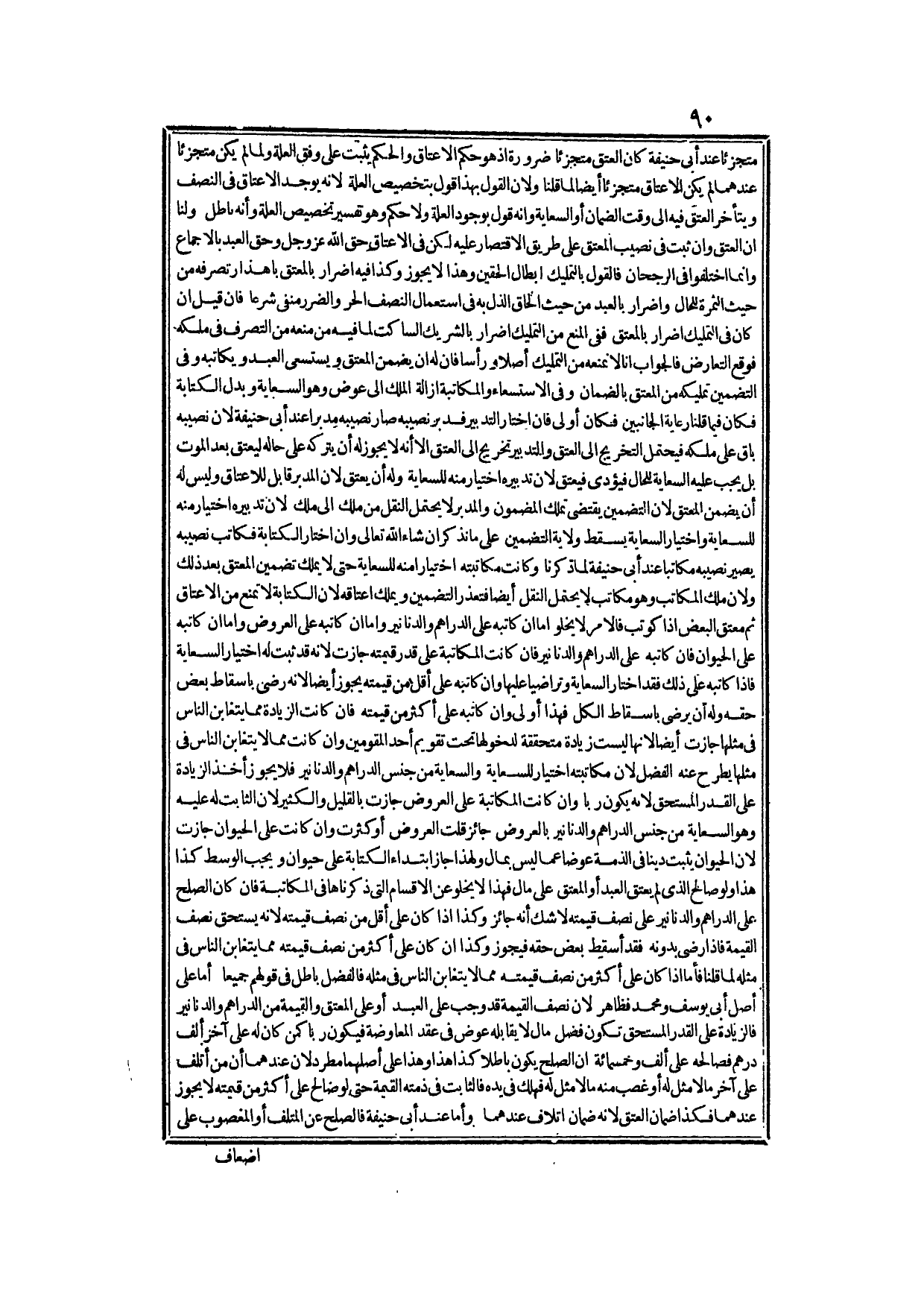 مُتَجَزِّئًا عِنْدَ أَبِي حَنِيفَةَ، كَانَ الْعِتْقُ مُتَجَزِّئًا ضَرُورَةً إذْ هُوَ حُكْمُ الْإِعْتَاقِ، وَالْحُكْمُ يَثْبُتُ عَلَى وَفْقِ الْعِلَّةِ، وَلَمَّا لَمْ يَكُنْ مُتَجَزِّئًا عِنْدَهُمَا لَمْ يَكُنِ الْإِعْتَاقُ مُتَجَزِّئًا أَيْضًا؛ لِمَا قُلْنَا؛ وَلِأَنَّ الْقَوْلَ بِهَذَا قَوْلٌ بِتَخْصِيصِ الْعِلَّةِ؛ لِأَنَّهُ يُوجَدُ الْإِعْتَاقَ فِي النِّصْفِ وَيَتَأَخَّرُ الْعِتْقُ فِيهِ إلَى وَقْتِ الضَّمَانِ أَوْ السِّعَايَةِ، وَأَنَّهُ قَوْلٌ بِوُجُودِ الْعِلَّةِ وَلَا حُكْمَ وَهُوَ تَفْسِيرُ تَخْصِيصِ الْعِلَّةِ وَأَنَّهُ بَاطِلٌ، وَلَنَا أَنَّ الْعِتْقَ وَإِنْ ثَبَتَ فِي نَصِيبِ الْمُعْتِقِ عَلَى طَرِيقِ الِاقْتِصَارِ عَلَيْهِ، لَكِنْ فِي الْإِعْتَاقِ حَقُّ اللَّهِ عَزَّ وَجَلَّ وَحَقُّ الْعَبْدِ بِالْإِجْمَاعِ وَإِنَّمَا اخْتَلَفُوا فِي الرُّجْحَانِ.