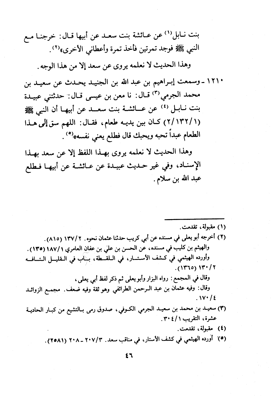 1210 - وَسَمِعْتُ إِبْرَاهِيمَ بْنَ عَبْدِ اللَّهِ بْنِ الْجُنَيْدِ، يُحَدِّثُ، عَنْ سَعِيدِ بْنِ مُحَمَّدٍ الْجَرْمِيُّ، قَالَ: نَا مَعْنُ بْنُ عِيسَى، قَالَ: حَدَّثَتْنِي عُبَيْدَةُ بِنْتُ نَابِلٍ، عَنْ عَائِشَةَ بِنْتِ سَعْدٍ، عَنْ أَبِيهَا: أَنَّ النَّبِيَّ صَلَّى اللهُ عَلَيْهِ وَسَلَّمَ كَانَ بَيْنَ يَدَيْهِ طَعَامٌ، فَقَالَ: «§اللَّهُمَّ سُقْ إِلَى هَذَا الطَّعَامِ عَبْدًا تُحِبُّهُ وَيُحِبُّكَ» ، قَالَ: فَطَلَعَ، يَعْنِي نَفْسَهُ وَهَذَا الْحَدِيثُ لَا نَعْلَمُهُ يُرْوَى بِهَذَا اللَّفْظِ إِلَّا عَنْ سَعْدٍ بِهَذَا الْإِسْنَادِ، وَفِي غَيْرِ حَدِيثِ عُبَيْدَةَ، عَنْ عَائِشَةَ، عَنْ أَبِيهَا، فَطَلَعَ عَبْدُ اللَّهِ بْنُ سَلَّامٍ
