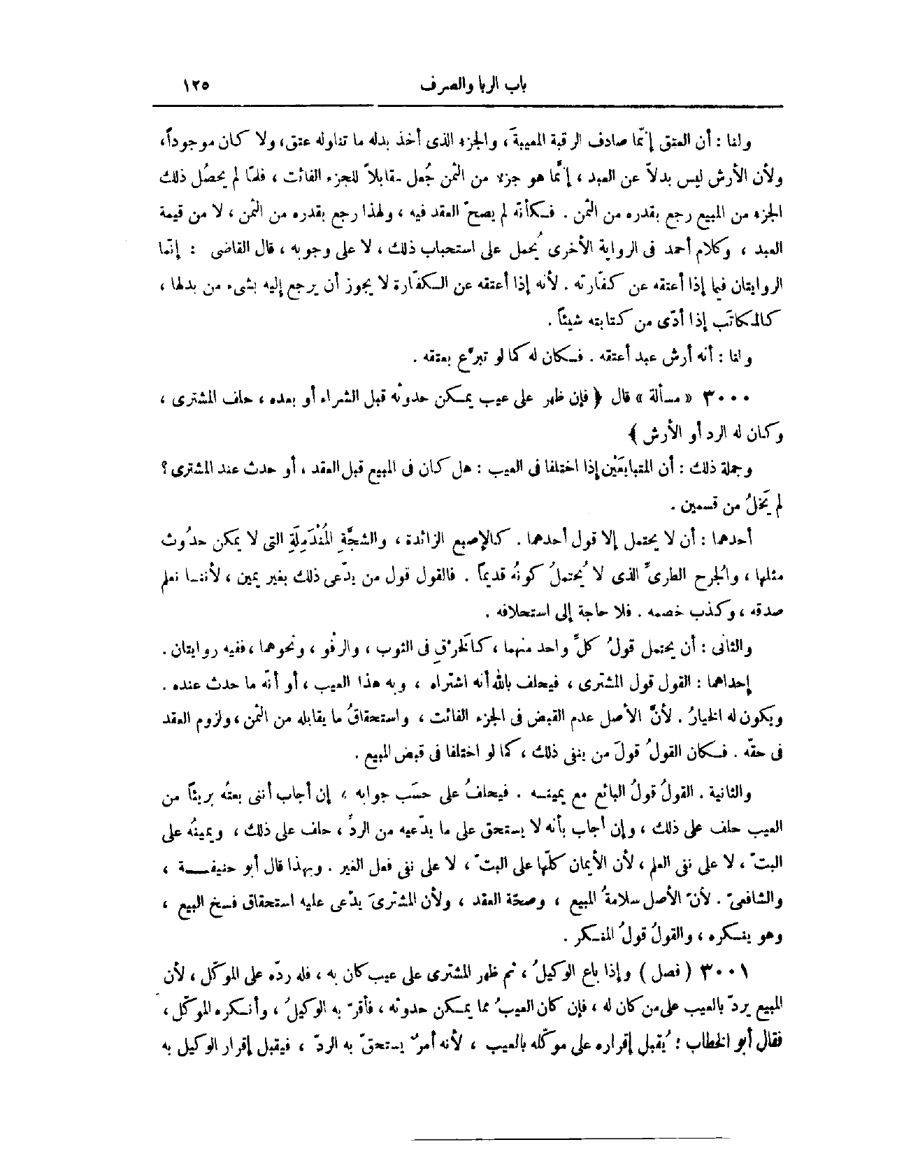 (٣٠٢٨) مَسْأَلَةٌ؛ قَالَ: (فَإِنْ ظَهَرَ عَلَى عَيْبٍ يُمْكِنُ حُدُوثُهُ قَبْلَ الشِّرَاءِ، أَوْ بَعْدَهُ، حَلَفَ الْمُشْتَرِي، وَكَانَ لَهُ الرَّدُّ أَوْ الْأَرْشُ) وَجُمْلَةُ ذَلِكَ، أَنَّ الْمُتَبَايِعَيْنِ إذَا اخْتَلَفَا فِي الْعَيْبِ، هَلْ كَانَ فِي الْمَبِيعِ قَبْلَ الْعَقْدِ، أَوْ حَدَثَ عِنْد الْمُشْتَرِي؟ لَمْ يَخْلُ مِنْ قِسْمَيْنِ؛ أَحَدِهِمَا، أَنْ لَا يَحْتَمِلَ إلَّا قَوْلَ أَحَدِهِمَا، كَالْإِصْبَعِ الزَّائِدَةِ، وَالشَّجَّةِ الْمُنْدَمِلَةِ، الَّتِي لَا يُمْكِنُ حُدُوثُ مِثْلِهَا، وَالْجُرْحِ الطَّرِيِّ الَّذِي لَا يُحْتَمَلُ كَوْنُهُ قَدِيمًا. فَالْقَوْلُ قَوْلُ مِنْ يَدَّعِي ذَلِكَ، بِغَيْرِ يَمِينٍ؛ لِأَنَّنَا نَعْلَمُ صِدْقَهُ، وَكَذِبَ خَصْمِهِ، فَلَا حَاجَةَ إلَى اسْتِحْلَافِهِ. وَالثَّانِي، أَنْ يَحْتَمِلَ قَوْلَ كُلِّ وَاحِدٍ مِنْهُمَا، كَالْخَرْقِ فِي الثَّوْبِ وَالرَّفْوِ، وَنَحْوِهِمَا، فَفِيهِ رِوَايَتَانِ؛ إحْدَاهُمَا، الْقَوْلُ قَوْلُ الْمُشْتَرِي، فَيَحْلِفُ بِاَللَّهِ أَنَّهُ اشْتَرَاهُ وَبِهِ هَذَا الْعَيْبُ، أَوْ أَنَّهُ مَا حَدَثَ عِنْدَهُ وَيَكُونُ لَهُ الْخِيَارُ؛ لِأَنَّ الْأَصْلَ عَدَمُ الْقَبْضِ فِي الْجُزْءِ الْفَائِتِ، وَاسْتِحْقَاقُ مَا يُقَابِلُهُ مِنْ الثَّمَنِ، وَلُزُومُ الْعَقْدِ فِي حَقِّهِ، فَكَانَ الْقَوْلُ قَوْلَ مَنْ يَنْفِي ذَلِكَ، كَمَا لَوْ اخْتَلَفَا فِي قَبْضِ الْمَبِيعِ.