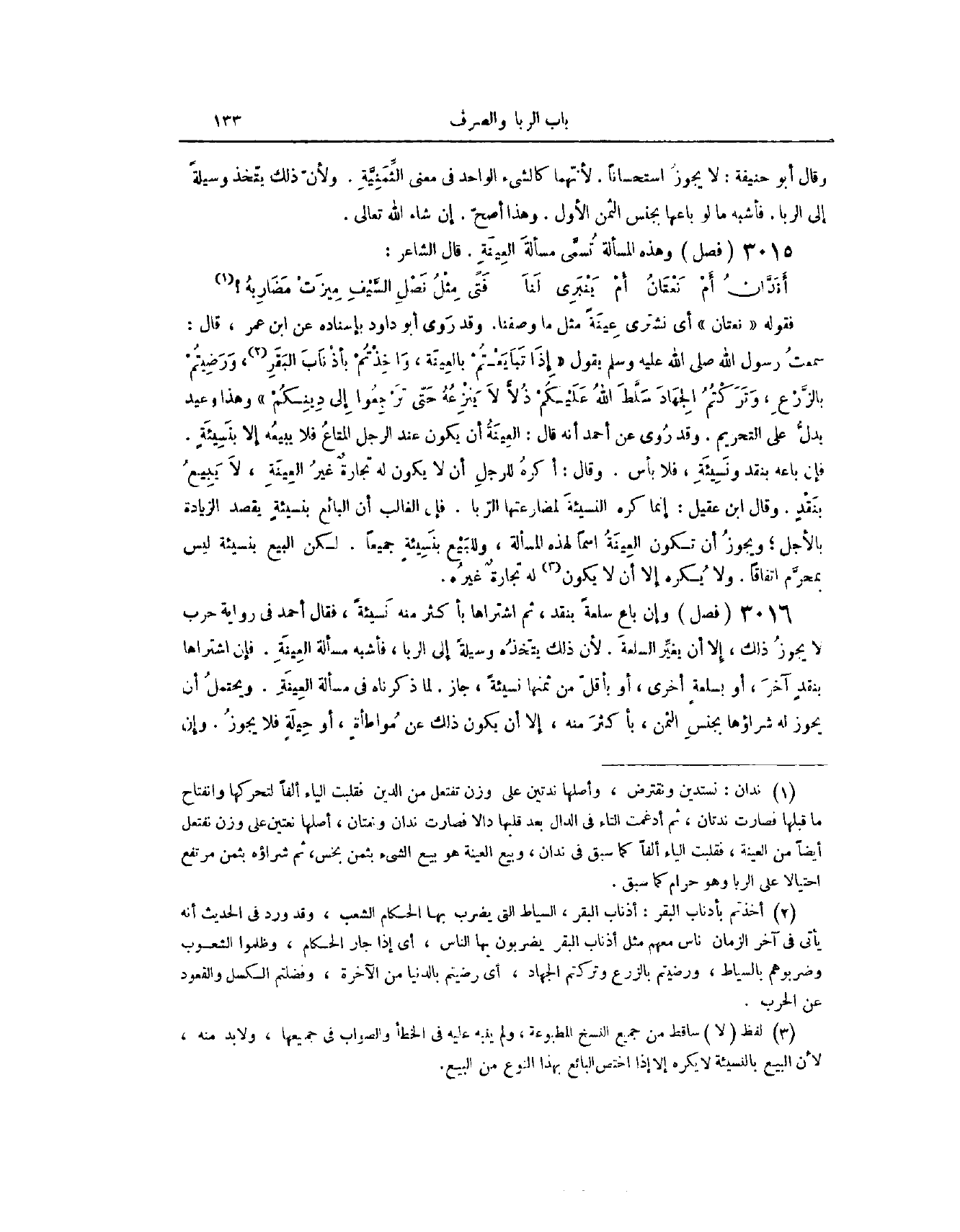 فَصْلٌ وَهَذِهِ الْمَسْأَلَةُ تُسَمَّى مَسْأَلَةَ الْعِينَةِ. قَالَ الشَّاعِرُ