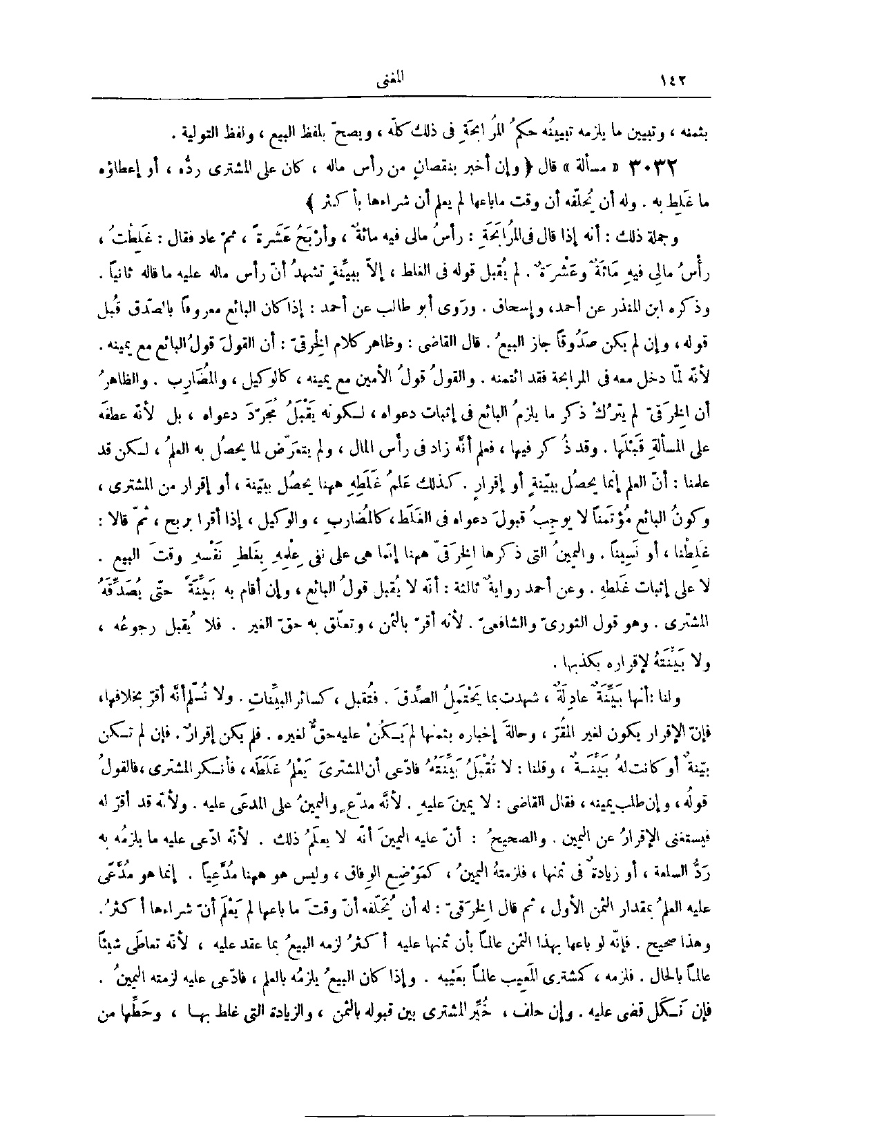(٣٠٦٠) مَسْأَلَةٌ؛ قَالَ وَإِنْ أَخْبَرَ بِنُقْصَانٍ مِنْ رَأْسِ مَالِهِ، كَانَ عَلَى الْمُشْتَرِي رَدُّهُ، أَوْ إعْطَاؤُهُ مَا غَلِطَ بِهِ، وَلَهُ أَنْ يُحَلِّفَهُ أَنَّ وَقْتَ مَا بَاعَهَا لَمْ يَعْلَمْ أَنَّ شِرَاءَهَا بِأَكْثَرَ. وَجُمْلَةُ ذَلِكَ أَنَّهُ إذَا قَالَ فِي الْمُرَابَحَةِ: رَأْسُ مَالِي فِيهِ مِائَةٌ، وَأَرْبَحُ عَشَرَةً. ثُمَّ عَادَ فَقَالَ: غَلِطْت، رَأْسُ مَالِي فِيهِ مِائَةٌ وَعَشَرَةٌ لَمْ يُقْبَلْ قَوْلُهُ فِي الْغَلَطِ إلَّا بِبَيِّنَةٍ تَشْهَدُ أَنَّ رَأْسَ مَالِهِ عَلَيْهِ مَا قَالَهُ ثَانِيًا. وَذَكَرَهُ ابْنُ الْمُنْذِرِ عَنْ أَحْمَدَ وَإِسْحَاقَ