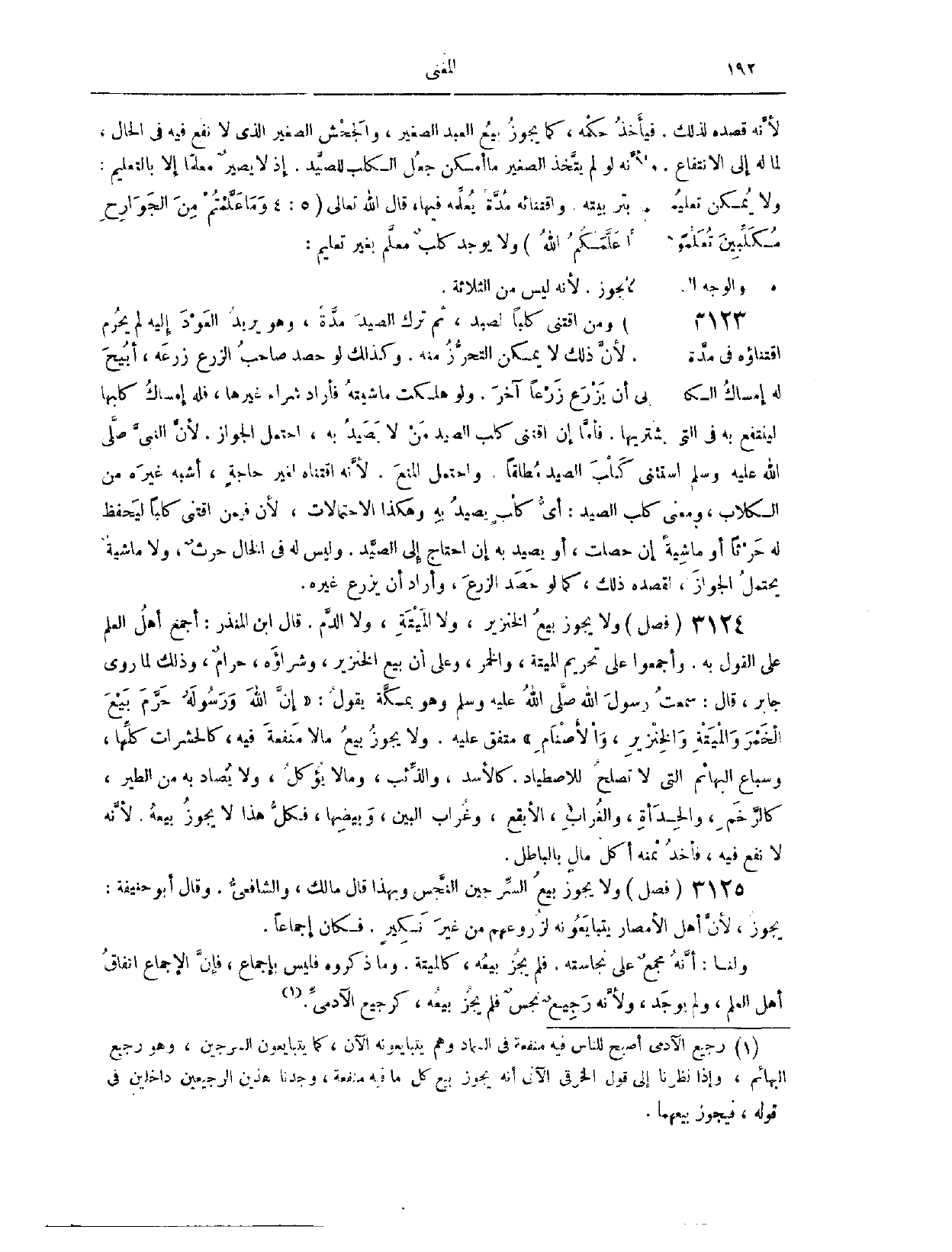 (٣١٦١) فَصْلٌ: وَلَا يَجُوزُ بَيْعُ الْخِنْزِيرِ، وَلَا الْمَيْتَةِ، وَلَا الدَّمِ. . قَالَ ابْنُ الْمُنْذِرِ: أَجْمَعَ أَهْلُ الْعِلْمِ عَلَى الْقَوْلِ بِهِ. وَأَجْمَعُوا عَلَى تَحْرِيمِ الْمَيْتَةِ وَالْخَمْرِ، وَعَلَى أَنَّ بَيْعَ الْخِنْزِيرِ، وَشِرَاءَهُ، حَرَامٌ؛ وَذَلِكَ لِمَا رَوَى جَابِرٌ قَالَ: سَمِعْت رَسُولَ اللَّهِ - صَلَّى اللَّهُ عَلَيْهِ وَسَلَّمَ - وَهُوَ بِمَكَّةَ يَقُولُ: «إنَّ اللَّهَ وَرَسُولَهُ حَرَّمَا بَيْعَ الْخَمْرِ، وَالْمَيْتَةِ، وَالْخِنْزِيرِ، وَالْأَصْنَامِ.» مُتَّفَقٌ عَلَيْهِ.