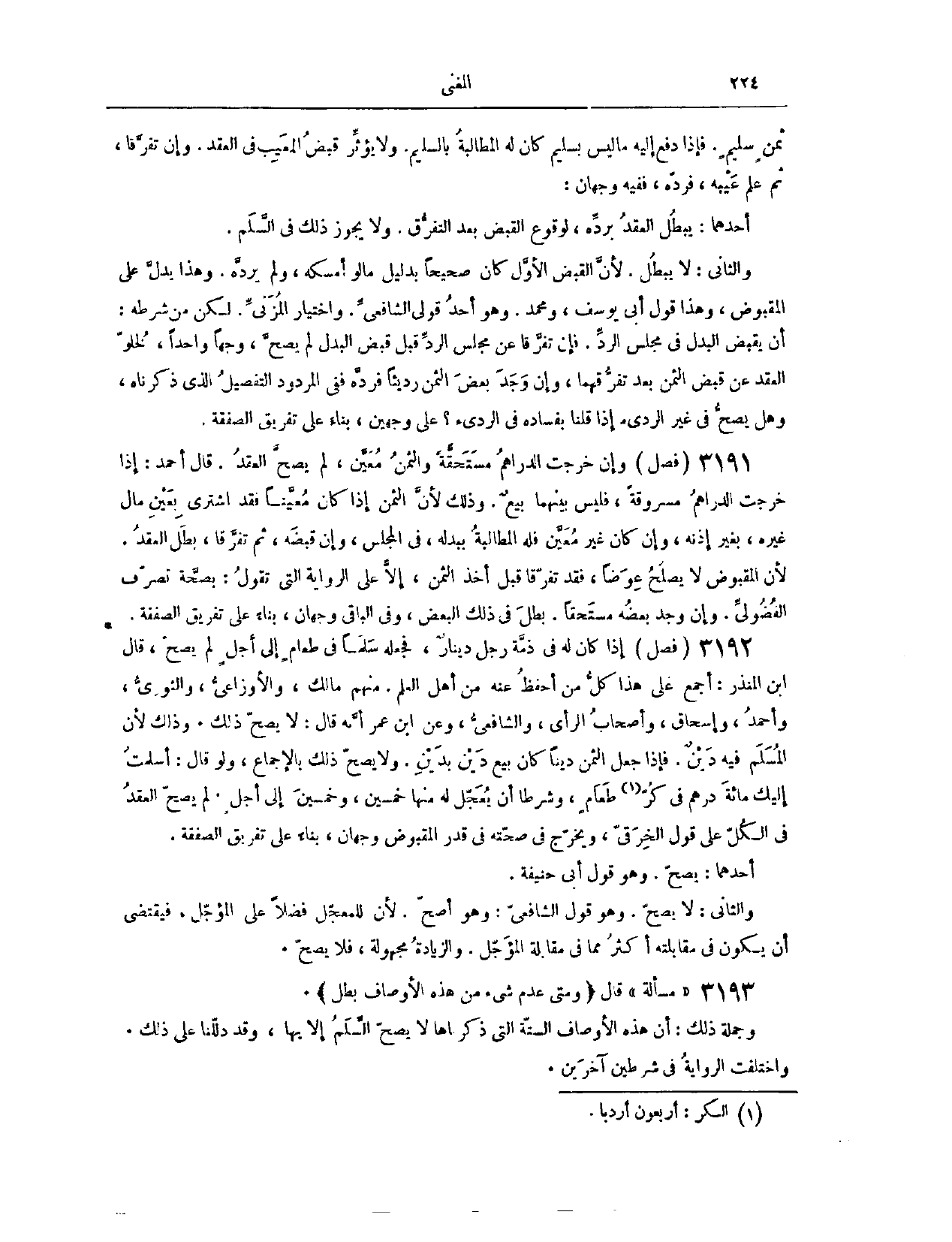 (٣٢٣٥) مَسْأَلَةٌ؛ قَالَ: (وَمَتَى عَدِمَ شَيْءٌ مِنْ هَذِهِ الْأَوْصَافِ، بَطَلَ) وَجُمْلَةُ ذَلِكَ، أَنَّ هَذِهِ الْأَوْصَافَ السِّتَّةَ الَّتِي ذَكَرْنَاهَا، لَا يَصِحُّ السَّلَمُ إلَّا بِهَا، وَقَدْ دَلَّلْنَا عَلَى ذَلِكَ. وَاخْتَلَفَتْ الرِّوَايَةُ فِي شَرْطَيْنِ آخَرَيْنِ: