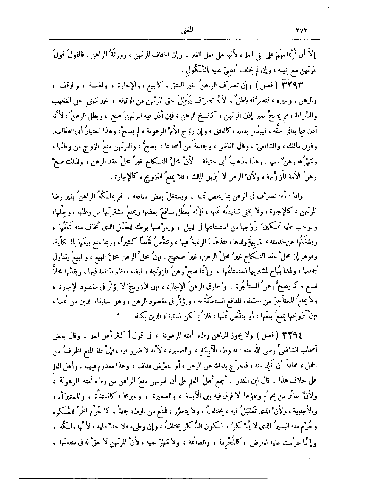 (٣٣٣٦) فَصْلٌ: وَلَا يَجُوزُ لِلرَّاهِنِ وَطْءُ أَمَتِهِ الْمَرْهُونَةِ، فِي قَوْلِ أَكْثَرِ أَهْلِ الْعِلْمِ. وَقَالَ بَعْضُ أَصْحَابِ الشَّافِعِيِّ - رَضِيَ اللَّهُ عَنْهُ - لَهُ وَطْءُ الْآيِسَةِ وَالصَّغِيرَةِ؛ لِأَنَّهُ لَا ضَرَرَ فِيهِ؛ فَإِنَّ عِلَّةَ الْمَنْعِ الْخَوْفُ مِنْ الْحَمْلِ، مَخَافَةَ أَنْ تَلِدَ مِنْهُ، فَتَخْرُجَ بِذَلِكَ عَنْ الرَّهْنِ، أَوْ تَتَعَرَّضَ لِلتَّلَفِ، وَهَذَا مَعْدُومٌ فِيهِمَا. وَأَهْلُ الْعِلْمِ عَلَى خِلَافِ هَذَا.