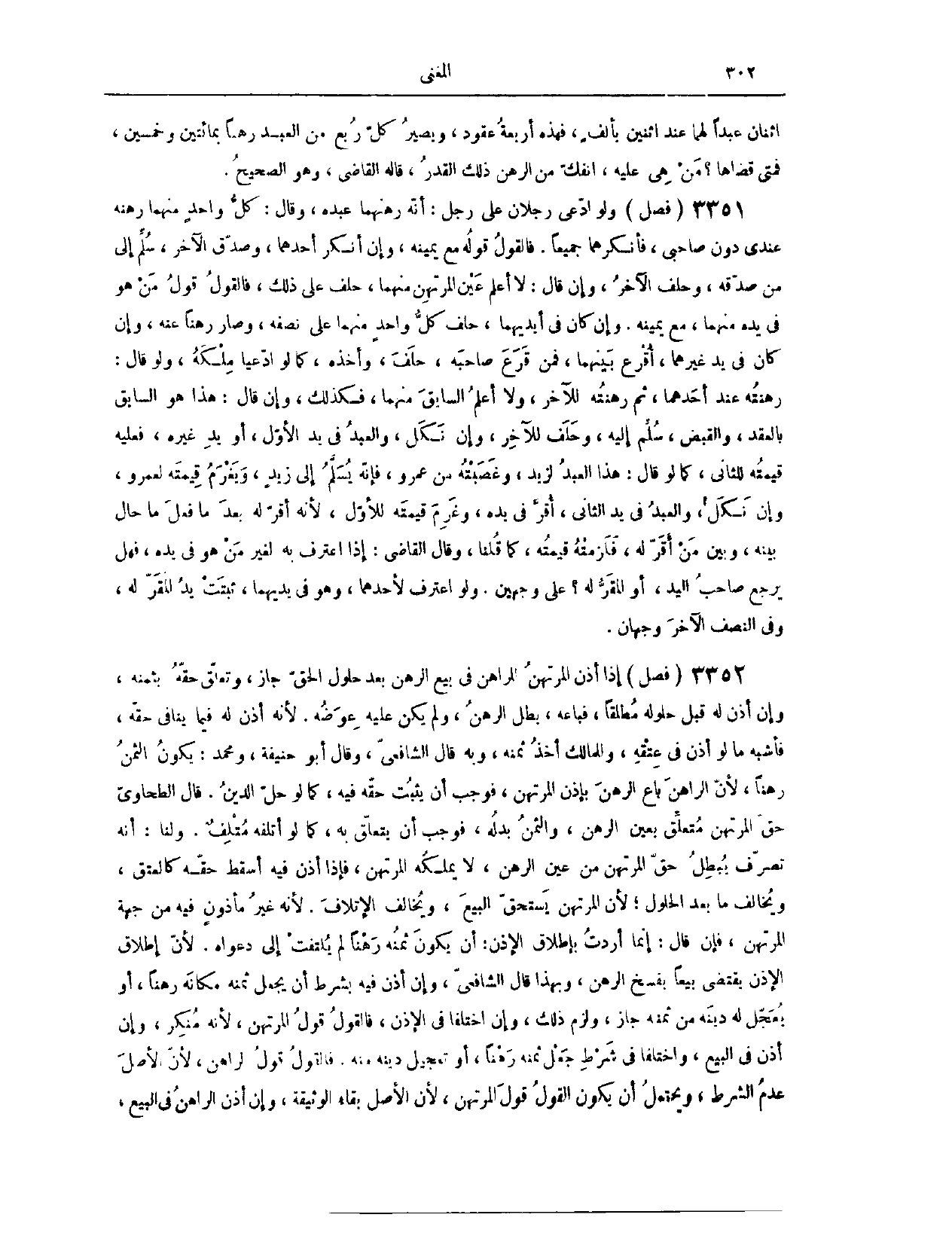 (٣٣٩٧) فَصْلٌ: وَلَوْ ادَّعَى رَجُلَانِ عَلَى رَجُلٍ أَنَّهُ رَهَنَهُمَا عَبْدَهُ وَقَالَ كُلُّ وَاحِدٍ مِنْهُمَا: رَهَنَهُ عِنْدِي دُونَ صَاحِبِي. فَأَنْكَرَهُمَا جَمِيعًا فَالْقَوْلُ قَوْلُهُ مَعَ يَمِينِهِ. وَإِنْ أَنْكَرَ أَحَدَهُمَا، وَصَدَّقَ الْآخَرَ، سُلِّمَ إلَى مَنْ صَدَّقَهُ، وَحُلِّفَ الْآخَرُ. وَإِنْ قَالَ: لَا أَعْلَمُ عَيْنَ الْمُرْتَهِنِ مِنْهُمَا. حَلَفَ عَلَى ذَلِكَ، وَالْقَوْلُ قَوْلُ مَنْ هُوَ فِي يَدِهِ مِنْهُمَا مَعَ يَمِينه. وَإِنْ كَانَ فِي أَيْدِيهِمَا، حَلَفَ كُلُّ وَاحِدٍ مِنْهُمَا عَلَى نِصْفِهِ، وَصَارَ رَهْنًا عِنْدَهُ. وَإِنْ كَانَ فِي يَدِ غَيْرِهِمَا، أَقْرَعِ بَيْنَهُمَا، فَمَنْ قَرَعَ صَاحِبَهُ، حَلَفَ وَأَخَذَهُ، كَمَا لَوْ ادَّعَيَا مِلْكَهُ. وَلَوْ قَالَ: رَهَنْته عِنْدَ أَحَدِهِمَا، ثُمَّ رَهَنْته لِلْآخَرِ، وَلَا أَعْلَمُ السَّابِقَ مِنْهُمَا. فَكَذَلِكَ، وَإِنْ قَالَ: هَذَا هُوَ السَّابِقُ بِالْعَقْدِ وَالْقَبْضِ. سُلِّمَ إلَيْهِ، وَحَلَفَ لِلْآخَرِ، وَإِنْ نَكِلَ وَالْعَبْدُ فِي يَدِ الْأَوَّلِ، أَوْ يَدِ غَيْرِهِ، فَعَلَيْهِ قِيمَتُهُ لِلثَّانِي، كَمَا لَوْ قَالَ: هَذَا الْعَبْدُ لِزَيْدٍ، وَغَصَبْته مِنْ عَمْرٍو. فَإِنَّهُ يُسَلَّمُ إلَى زَيْدٍ، وَيَغْرَمُ قِيمَتَهُ لِعَمْرٍو. وَإِنْ نَكِلَ وَالْعَبْدُ فِي يَدِ الثَّانِي، أَقَرَّ فِي يَدِهِ، وَغَرِمَ قِيمَتَهُ لِلْأَوَّلِ؛ لِأَنَّهُ أَقَرَّ لَهُ بَعْدَ مَا فَعَلَ مَا حَالَ بَيْنَهُ وَبَيْنَ مَنْ أَقَرَّ لَهُ، فَلَزِمَتْهُ قِيمَتُهُ، كَمَا قُلْنَا. وَقَالَ الْقَاضِي: إذَا اعْتَرَفَ بِهِ لِغَيْرِ مَنْ هُوَ فِي يَدِهِ، فَهَلْ يَرْجِعُ صَاحِبُ الْيَدِ أَوْ الْمُقِرُّ لَهُ؟ عَلَى وَجْهَيْنِ. وَلَوْ اعْتَرَفَ لَأَحَدِهِمَا وَهُوَ فِي يَدَيْهِمَا. ثَبَتَتْ يَدُ الْمُقِرِّ لَهُ فِي النِّصْفِ، وَفِي النِّصْفِ الْآخَرِ وَجْهَانِ.