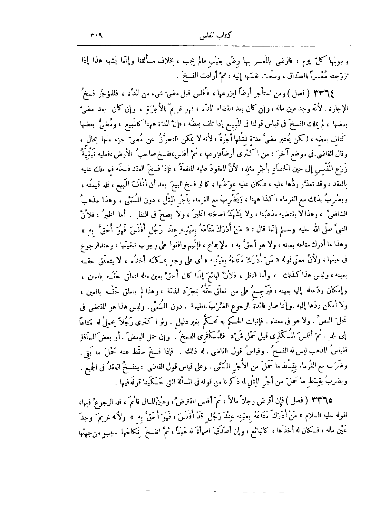(٣٤١٠) فَصْلٌ: وَمَنْ اسْتَأْجَرَ أَرْضًا لِيَزْرَعَهَا، فَأَفْلَسَ قَبْلَ مُضِيِّ شَيْءٍ مِنْ الْمُدَّةِ فَلِلْمُؤَجَّرِ فَسْخُ الْإِجَارَةِ؛ لِأَنَّهُ وَجَدَ عَيْنَ مَالِهِ، وَإِنْ كَانَ بَعْدَ انْقِضَاءِ الْمُدَّةِ، فَهُوَ غَرِيمٌ بِالْأُجْرَةِ. وَإِنْ كَانَ بَعْدَ مُضِيِّ بَعْضِهَا، لَمْ يَمْلِكْ الْفَسْخَ فِي قِيَاسِ قَوْلِنَا فِي الْمَبِيعِ إذَا تَلِفَ بَعْضُهُ، فَإِنَّ الْمُدَّةَ هَاهُنَا كَالْمَبِيعِ، وَمُضِيُّ بَعْضِهَا كَتَلَفِ بَعْضِهِ، لَكِنْ يُعْتَبَرُ مُضِيُّ مُدَّةٍ لِمِثْلِهَا أُجْرَةٌ؛ لِأَنَّهُ لَا يُمْكِنُ التَّحَرُّزُ عَنْ مُضِيِّ جُزْءٍ مِنْهَا بِحَالِ