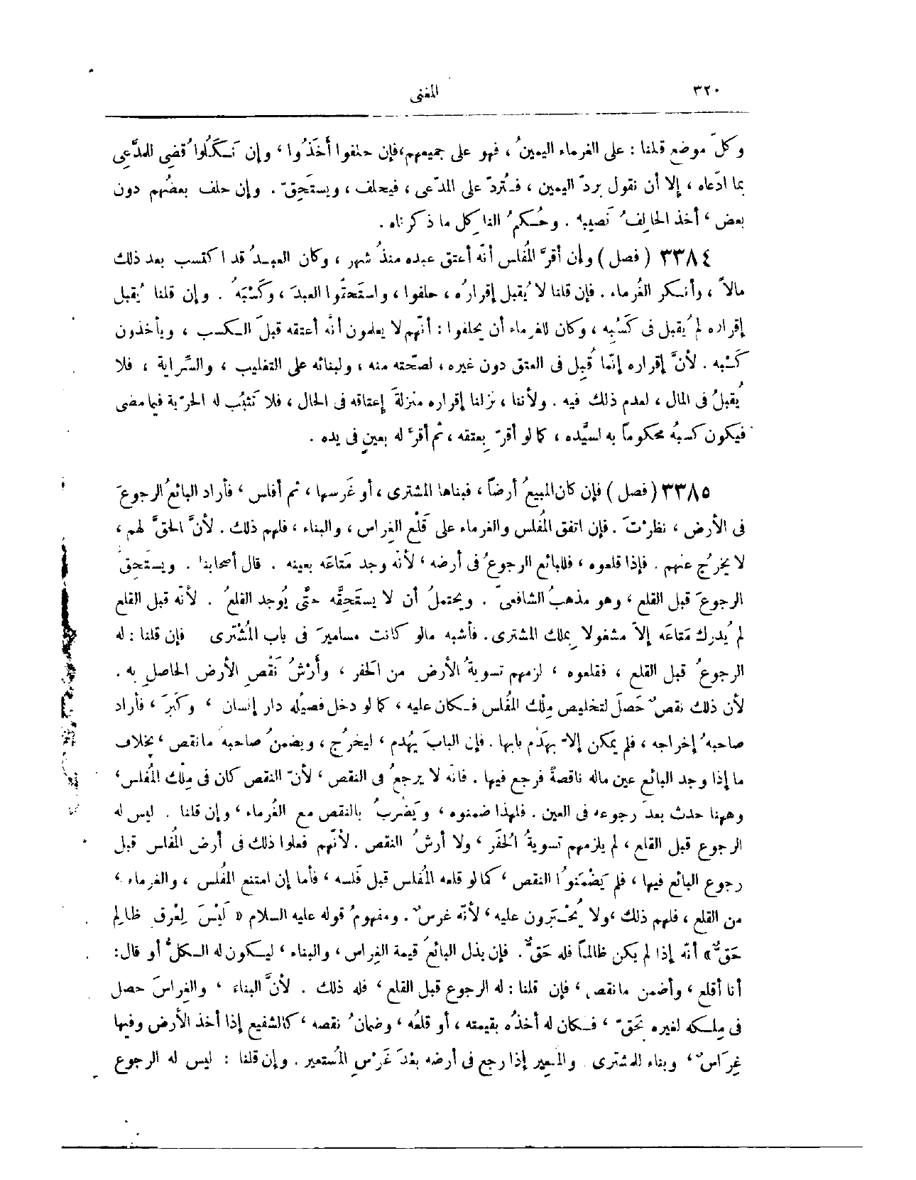 (٣٤٣١) فَصْلٌ: فَإِنْ كَانَ الْمَبِيعُ أَرْضًا فَبَنَاهَا الْمُشْتَرِي، أَوْ غَرَسَهَا، ثُمَّ أَفْلَسَ، فَأَرَادَ الْبَائِعُ الرُّجُوعَ فِي الْأَرْضِ، نَظَرْت؛ فَإِنْ اتَّفَقَ الْمُفْلِسُ وَالْغُرَمَاءُ عَلَى قَلْعِ الْغِرَاسِ وَالْبِنَاءِ، فَلَهُمْ ذَلِكَ؛ لِأَنَّ الْحَقَّ لَهُمْ، لَا يَخْرُجُ عَنْهُمْ، فَإِذَا قَلَعُوهُ، فَلِلْبَائِعِ الرُّجُوعُ فِي أَرْضِهِ؛ لِأَنَّهُ وَجَدَ مَتَاعَهُ بِعَيْنِهِ