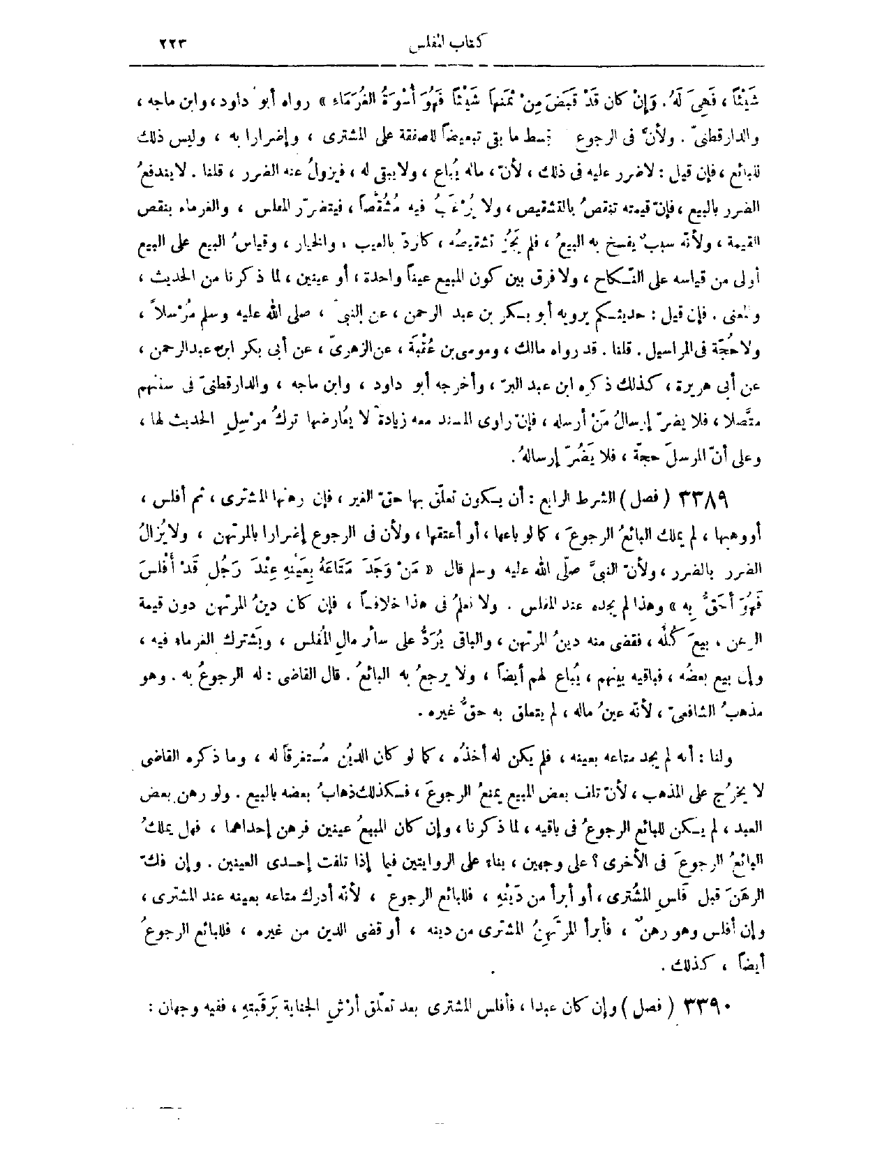 (٣٤٣٥) فَصْلٌ: الشَّرْطُ الرَّابِعُ، أَنْ لَا يَكُونَ تَعَلَّقَ بِهَا حَقُّ الْغَيْرِ.