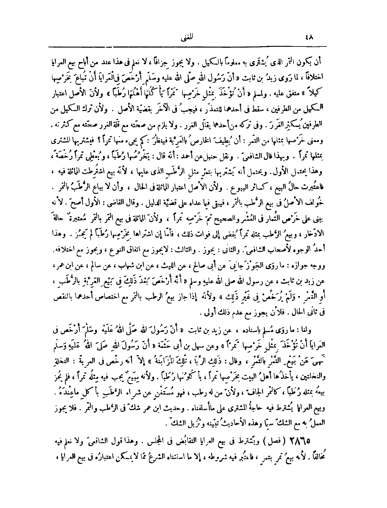 (٢٨٧١) فَصْلٌ: وَيُشْتَرَطُ فِي بَيْعِ الْعَرَايَا التَّقَابُضُ فِي الْمَجْلِسِ. وَهَذَا قَوْلُ الشَّافِعِيِّ، وَلَا نَعْلَمُ فِيهِ مُخَالِفًا؛ لِأَنَّهُ بَيْعُ تَمْرٍ بِتَمْرٍ، فَاعْتُبِرَ فِيهِ شُرُوطُهُ، إلَّا مَا اسْتَثْنَاهُ الشَّرْعُ مِمَّا لَا يُمْكِنُ اعْتِبَارُهُ فِي بَيْعِ الْعَرَايَا.