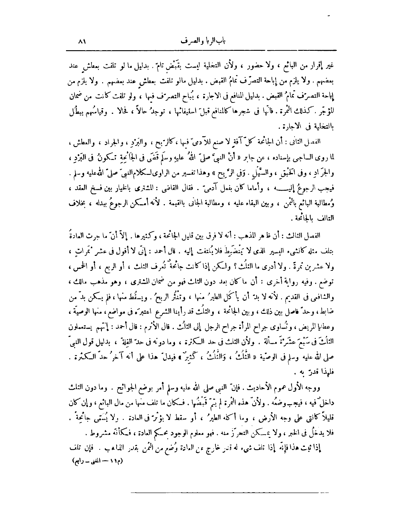(٢٩٤٢) الْفَصْلُ الثَّانِي: أَنَّ الْجَائِحَةَ كُلُّ آفَةٍ لَا صُنْعَ لِلْآدَمِيِّ فِيهَا، كَالرِّيحِ، وَالْبَرْدِ، وَالْجَرَادِ، وَالْعَطَشِ؛ لِمَا رَوَى السَّاجِيُّ بِإِسْنَادِهِ، عَنْ جَابِرٍ، «أَنَّ النَّبِيَّ - صَلَّى اللَّهُ عَلَيْهِ وَسَلَّمَ - قَضَى فِي الْجَائِحَةِ.» وَالْجَائِحَةُ تَكُونُ فِي الْبَرْدِ، وَالْجَرَادِ، وَفِي الْحَبَقِ، وَالسَّيْلِ، وَفِي الرِّيحِ. وَهَذَا تَفْسِيرٌ مِنْ الرَّاوِي لِكَلَامِ النَّبِيِّ - صَلَّى اللَّهُ عَلَيْهِ وَسَلَّمَ - فَيَجِبُ الرُّجُوعُ إلَيْهِ.