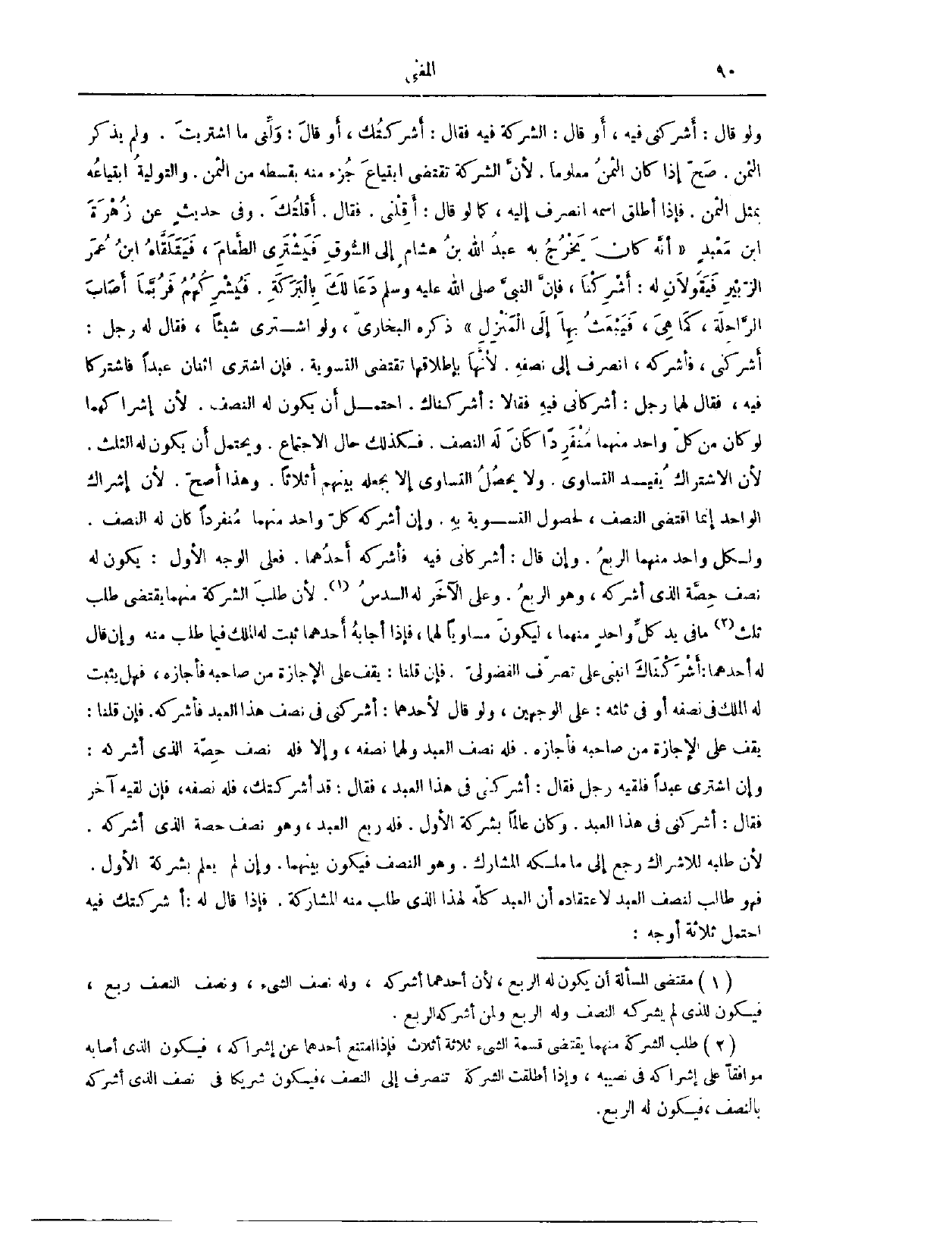 وَإِنْ لَمْ يَعْلَمْ بِشَرِكَةِ الْأَوَّلِ، فَهُوَ طَالِبٌ لِنِصْفِ الْعَبْدِ؛ لِاعْتِقَادِهِ أَنَّ الْعَبْدَ كُلَّهُ لِهَذَا الَّذِي طَلَبَ مِنْهُ الْمُشَارَكَةَ. فَإِذَا قَالَ لَهُ: أَشْرَكْتُكَ فِيهِ. احْتَمَلَ ثَلَاثَةَ أَوْجُهٍ: