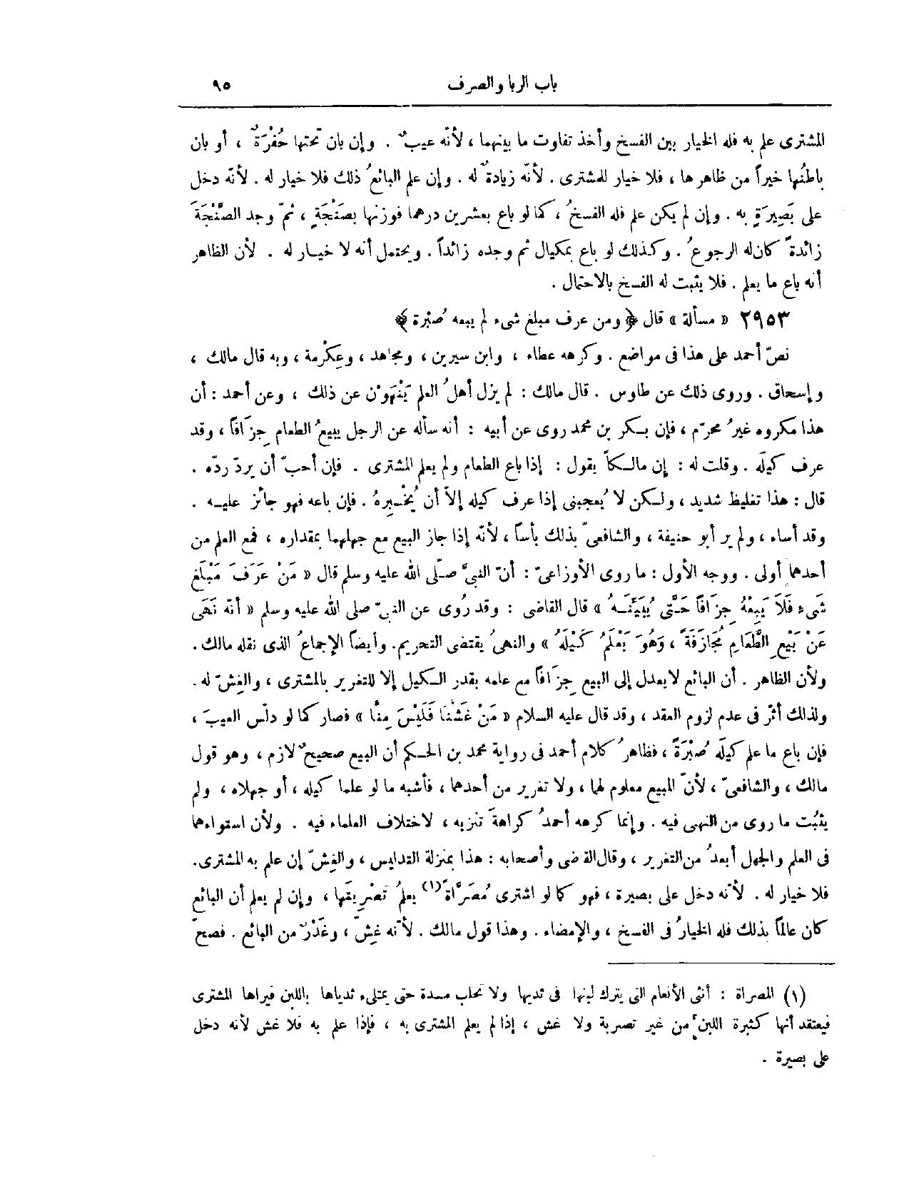 [مَسْأَلَةٌ مَنْ عَرَفَ مَبْلَغ شَيْء لَمْ يَبِعْهُ صَبِرَة]