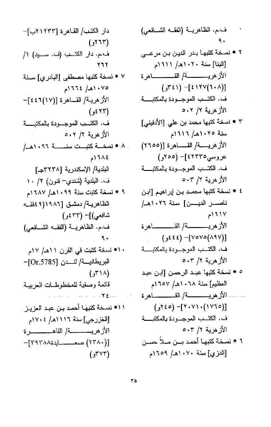 25( نسخة كتبها محمد بن محمد بن حسن (المصري( سنة 1146هـ/ 1733م