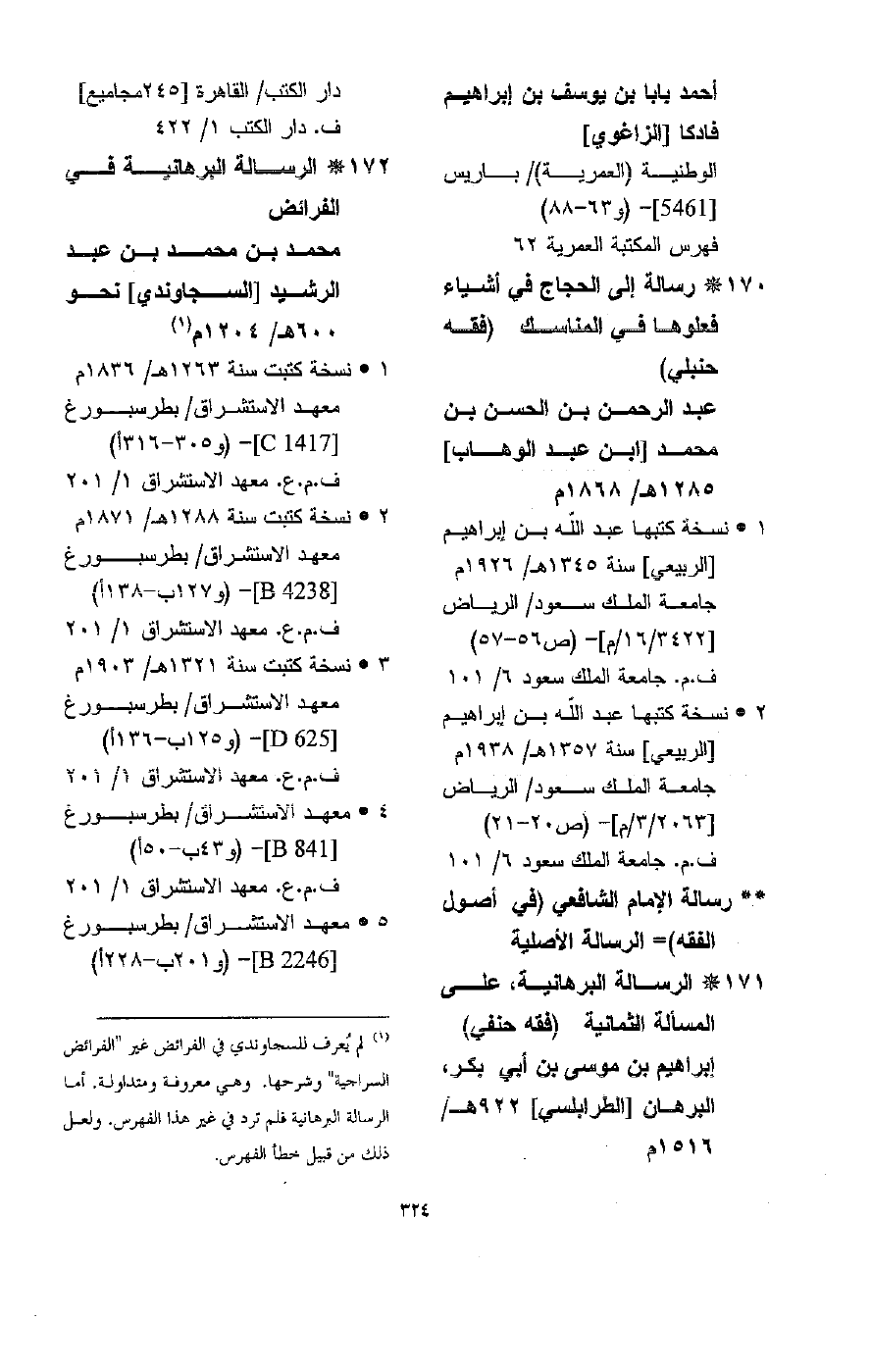 (3) لم ينسب هذا الكتاب لابن الشحنة إلاّ في فهرس نور عثمانية، وهو فيه عبد البر محمد، المتوفى سنة 882هـ؟، والتصحيح من إيضاح المكنون (1/ 602).