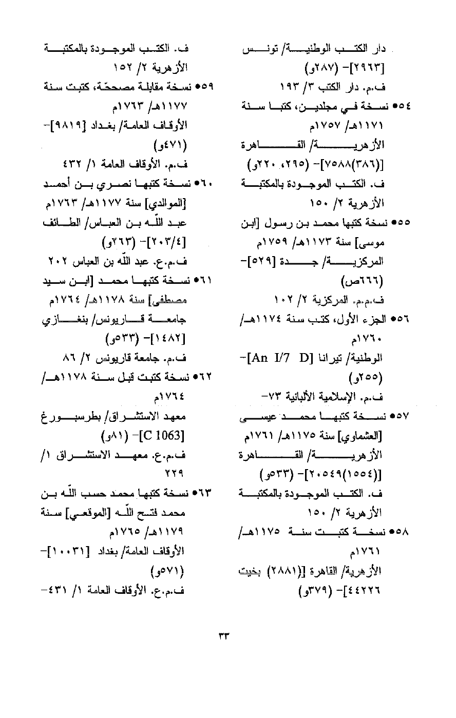 133( نسخة في مجلدين، كتبهما محمد صادق (الحلبي( سنة 1250هـ/ 1834م