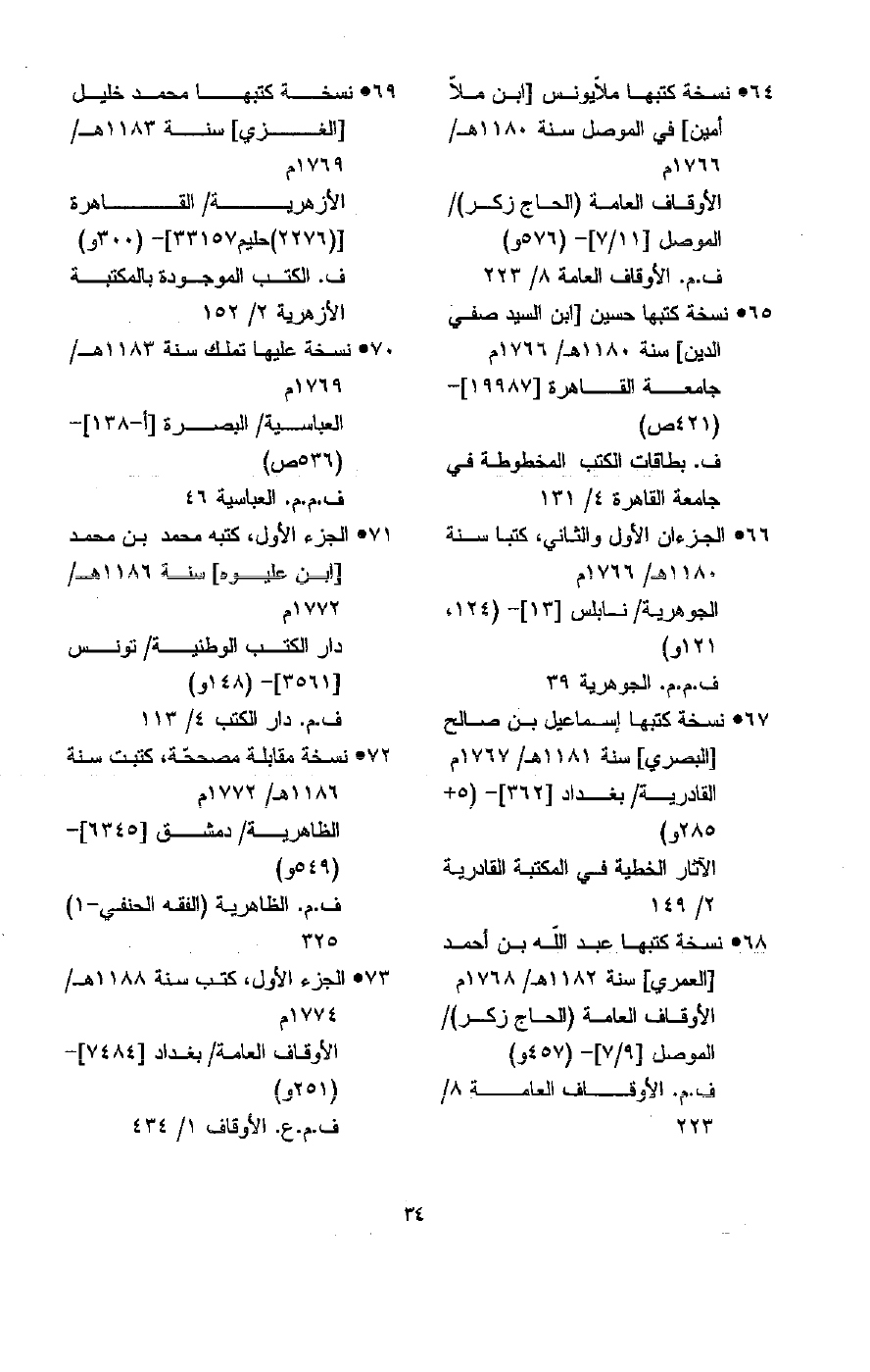 140( نسخة في مجلدين، كتب الأول محمد بن حسن (المفتي(، وكتب الثاني عبد المتعال (إسماعيل( سنة 1256هـ/ 1840م