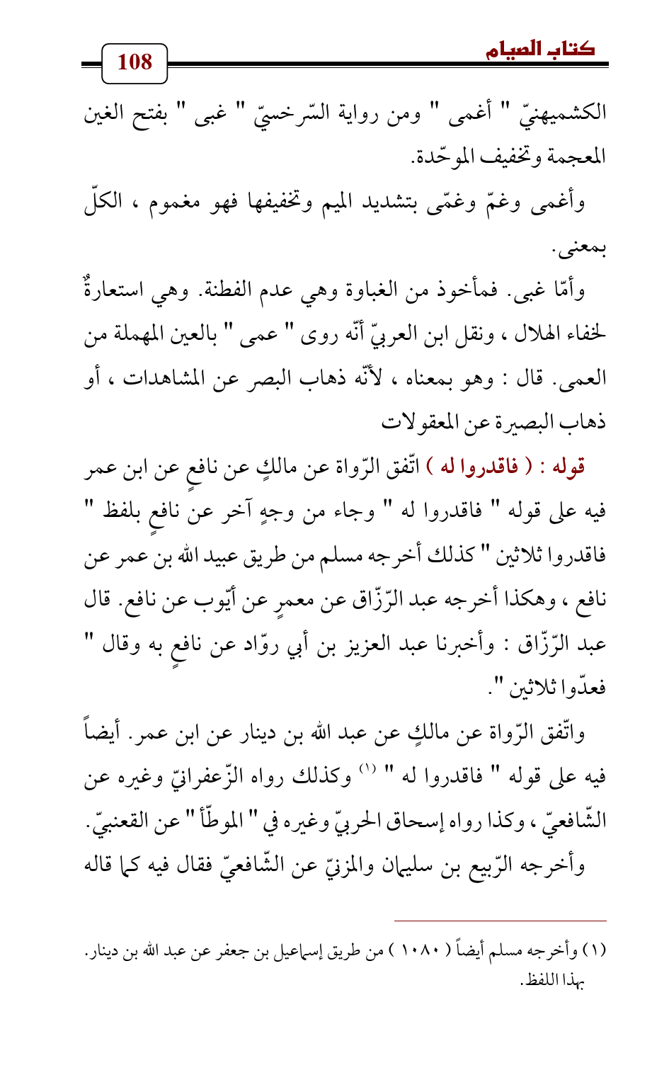 (¬1) وأخرجه مسلم أيضاً (1080) من طريق إسماعيل بن جعفر عن عبد الله بن دينار. بهذا اللفظ.