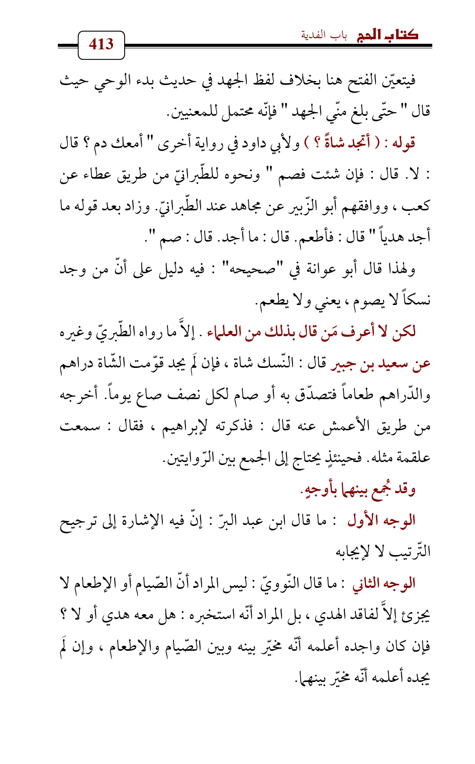 الوجه الثاني: ما قال النّوويّ: ليس المراد أنّ الصّيام أو الإطعام لا يجزئ إلاَّ لفاقد الهدي، بل المراد أنّه استخبره: هل معه هدي أو لا؟ فإن كان واجده أعلمه أنّه مخيّر بينه وبين الصّيام والإطعام، وإن لَم يجده أعلمه أنّه مخيّر بينهما.