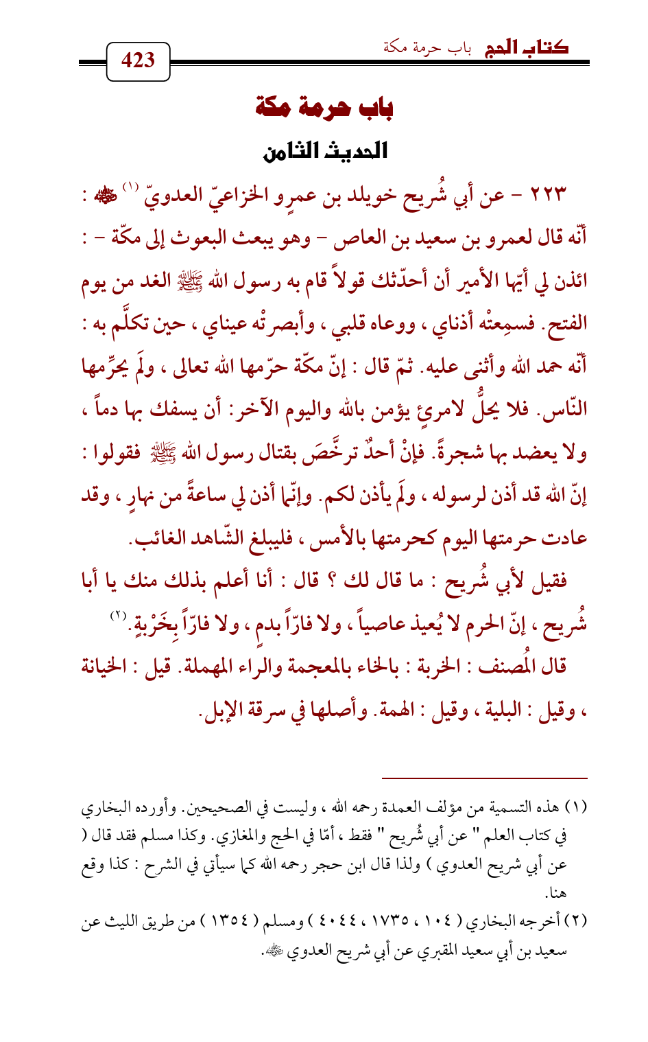 (¬2) أخرجه البخاري (104 , 1735 , 4044) ومسلم (1354) من طريق الليث عن سعيد بن أبي سعيد المقبري عن أبي شريح العدوي - رضي الله عنه -.