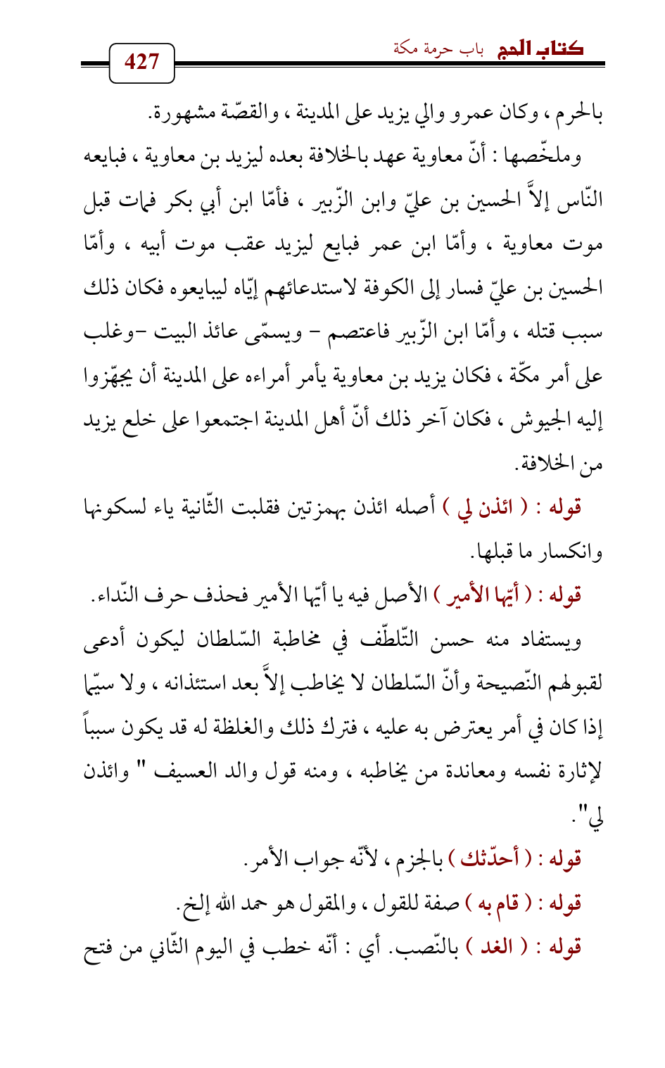 بالحرم، وكان عمرو والي يزيد على المدينة، والقصّة مشهورة.