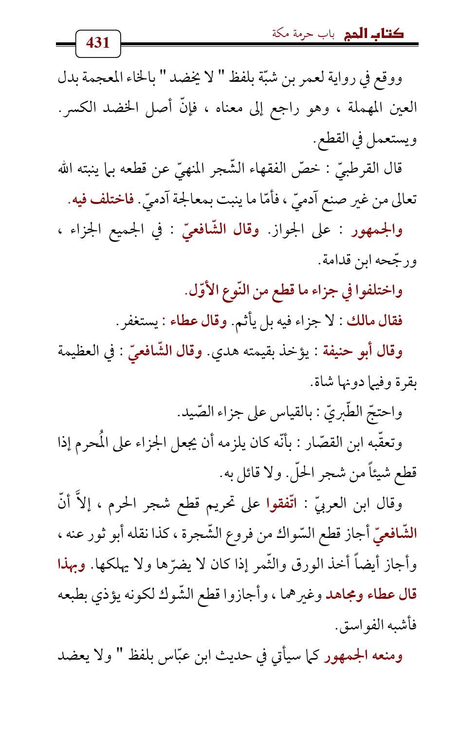 ومنعه الجمهور كما سيأتي في حديث ابن عبّاس بلفظ " ولا يعضد