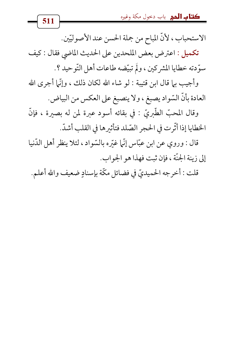 وقال المحبّ الطّبريّ: في بقائه أسود عبرة لمن له بصيرة، فإنّ الخطايا إذا أثّرت في الحجر الصّلد فتأثيرها في القلب أشدّ.
