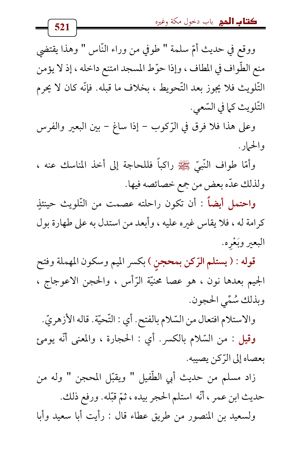 واحتمل أيضاً: أن تكون راحلته عصمت من التّلويث حينئذٍ كرامة له , فلا يقاس غيره عليه، وأبعد من استدل به على طهارة بول البعير وبَعْرِه.