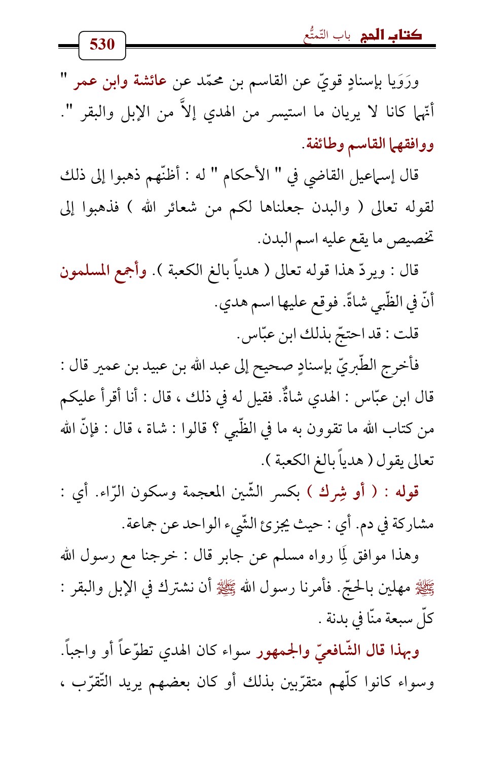 ورَوَيا بإسنادٍ قويّ عن القاسم بن محمّد عن عائشة وابن عمر " أنّهما كانا لا يريان ما استيسر من الهدي إلاَّ من الإبل والبقر ". ووافقهما القاسم وطائفة.