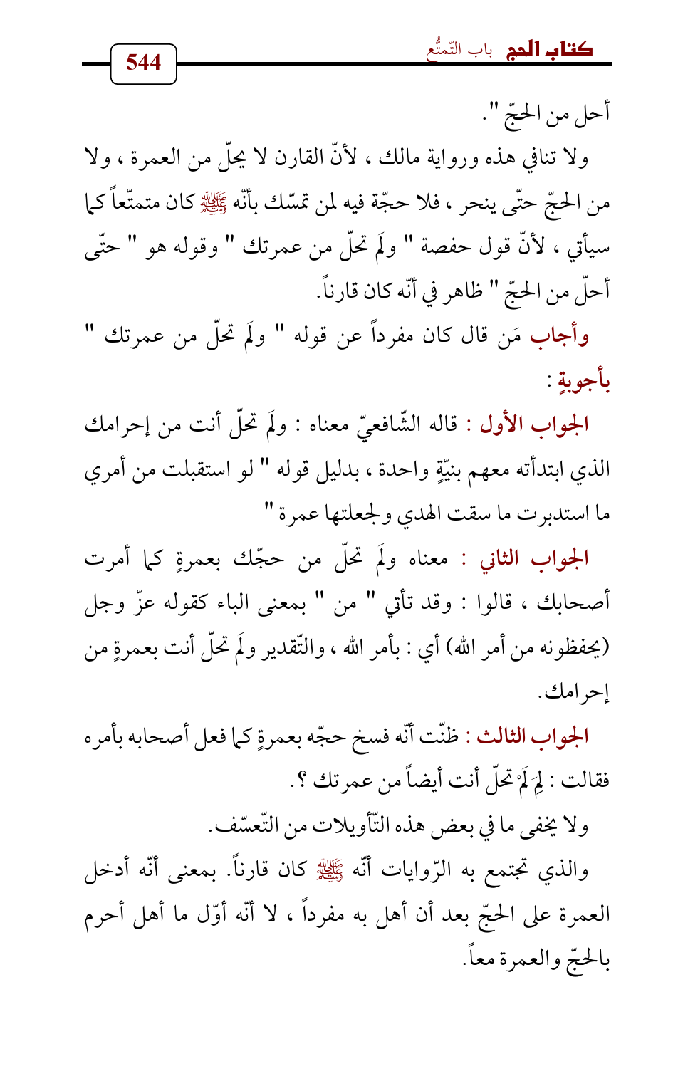 وأجاب مَن قال كان مفرداً عن قوله " ولَم تحلّ من عمرتك " بأجوبةٍ:
