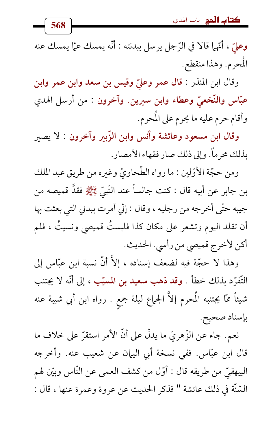 وعليّ , أنّهما قالا في الرّجل يرسل ببدنته: أنّه يمسك عمّا يمسك عنه المُحرم. وهذا منقطع.
