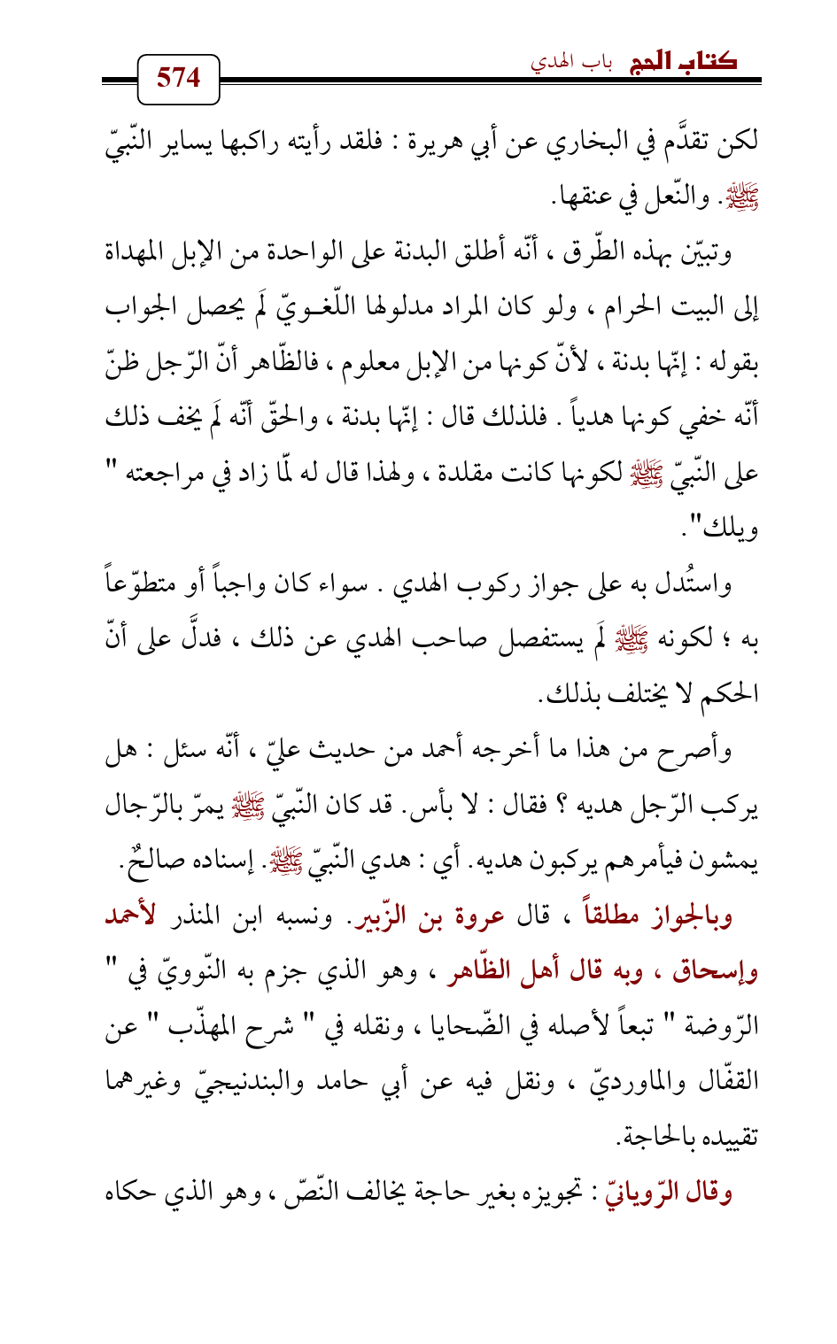 وأصرح من هذا ما أخرجه أحمد من حديث عليّ , أنّه سئل: هل يركب الرّجل هديه؟ فقال: لا بأس. قد كان النّبيّ - صلى الله عليه وسلم - يمرّ بالرّجال يمشون فيأمرهم يركبون هديه. أي: هدي النّبيّ - صلى الله عليه وسلم -. إسناده صالحٌ.