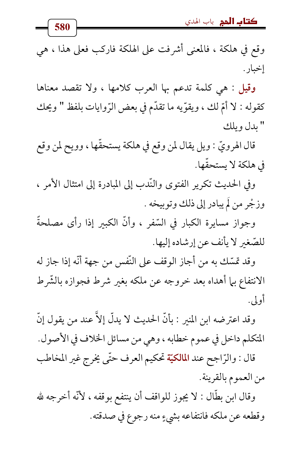 قال الهرويّ: ويل يقال لمن وقع في هلكة يستحقّها , وويح لمن وقع في هلكة لا يستحقّها.